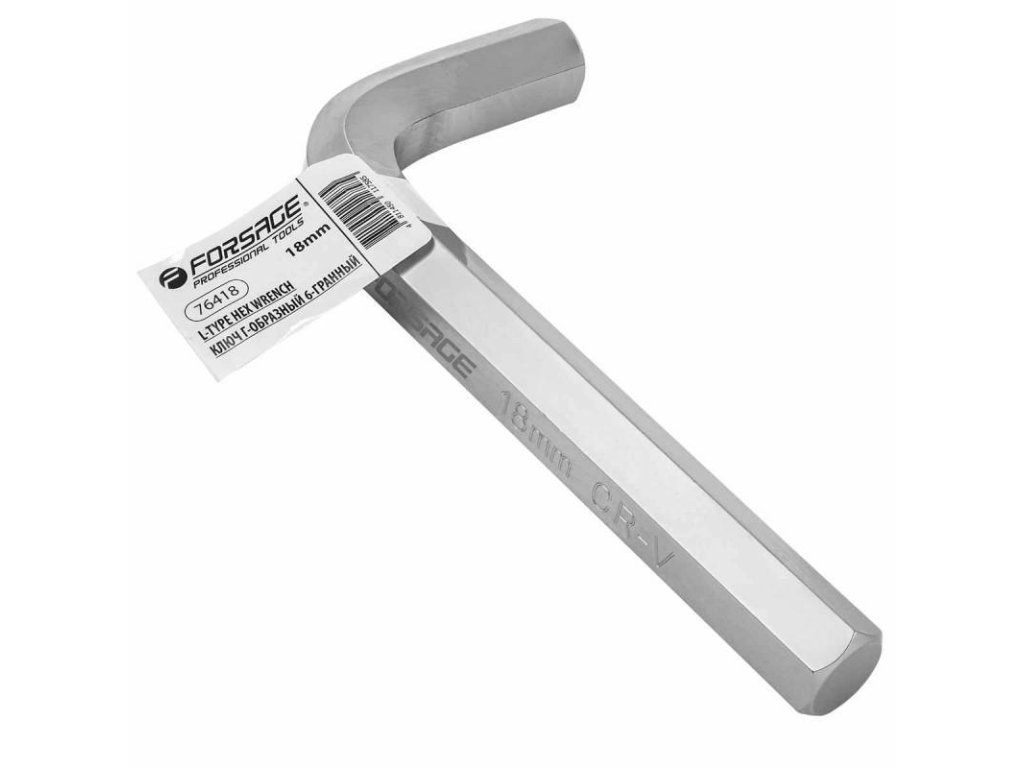- Šesterokutni ključ u obliku slova L 18 mm je alat za bravarske i montažne radove, koji ima vanjski izrez u obliku pravilnog šesterokuta. Služi za odvrtnje i zatezanje vijaka s unutarnjim šesterokutom 18 mm. Ima poseban oblik koji podsjeća na slovo „G“, što omogućuje udobno i učinkovito primjenjivanje snage pri vijenju ili odvijanju spojnog elementa. Oblik „H“ osigurava dobru ergonomiju i udobnost prilikom rada. Ključ je izrađen od visoko kvalitetnog čelika s krom-vanadijem, što jamči njegovu izdržljivost i pouzdanost tijekom korištenja. Sposoban je podnijeti značajnu težinu pri vijenju ili odvijanju konektora. Šesterokutni profil ima precizan spoj s pričvrsnim elementima, što omogućuje prepoznavanje rizika od oštećenja elemenata tijekom zatezanja ili odvijanja.