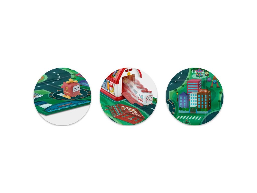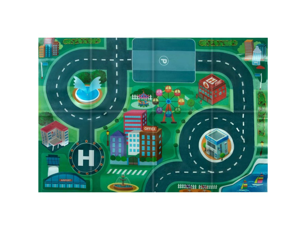 - debelu sklopivu podlogu s kartom grada,