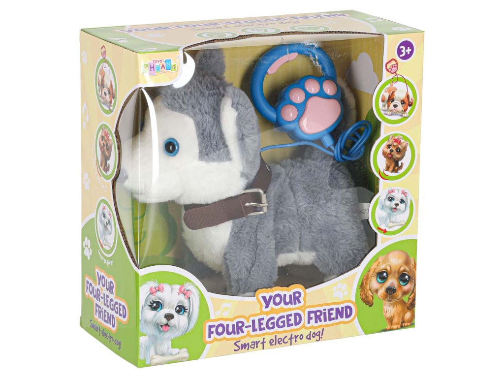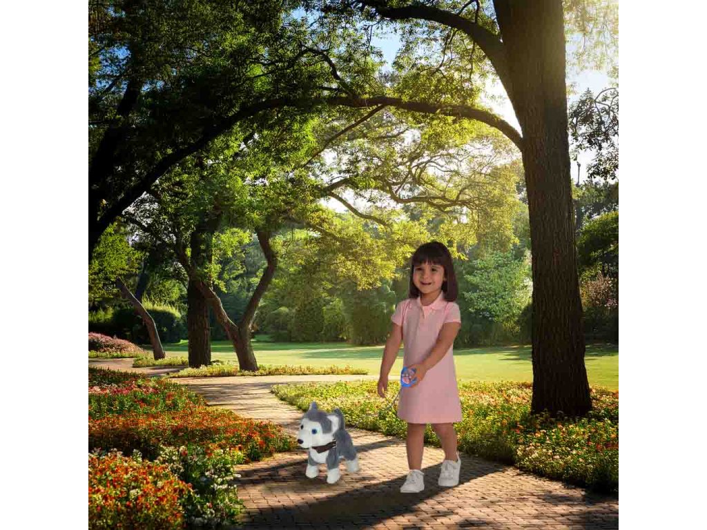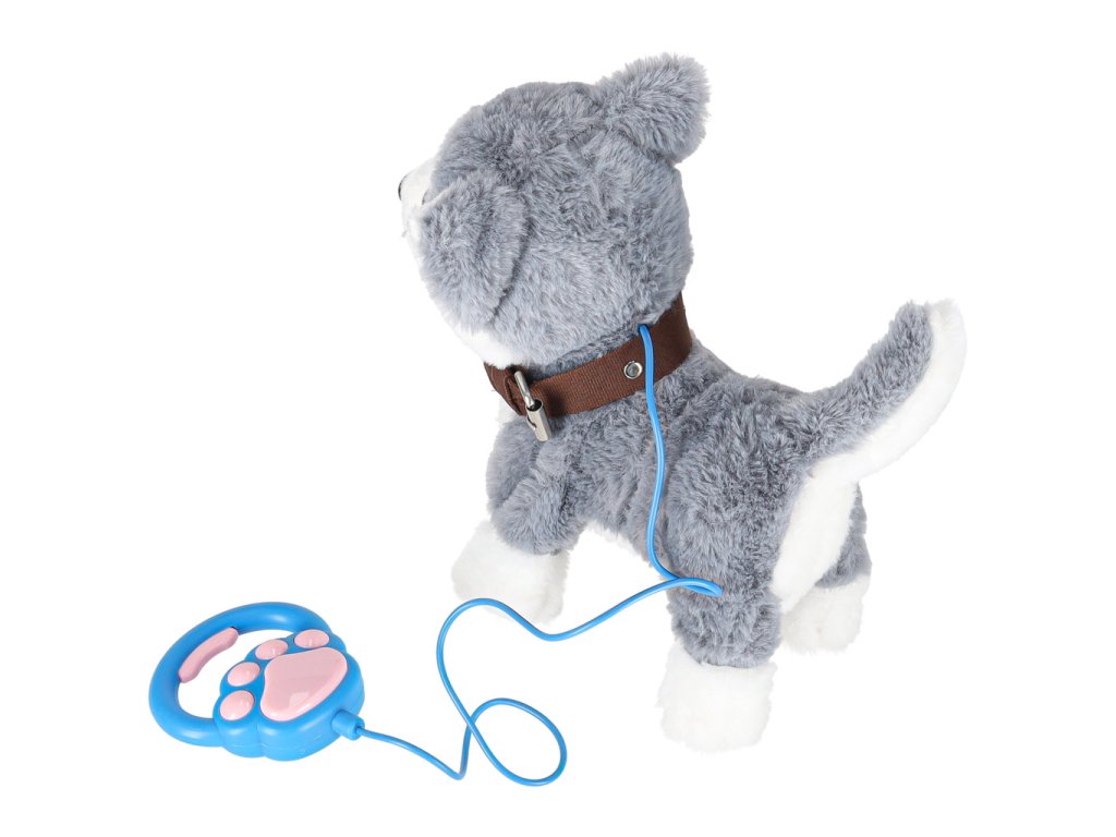 Interaktivni pas na povodcu laje hoda maše repom Husky