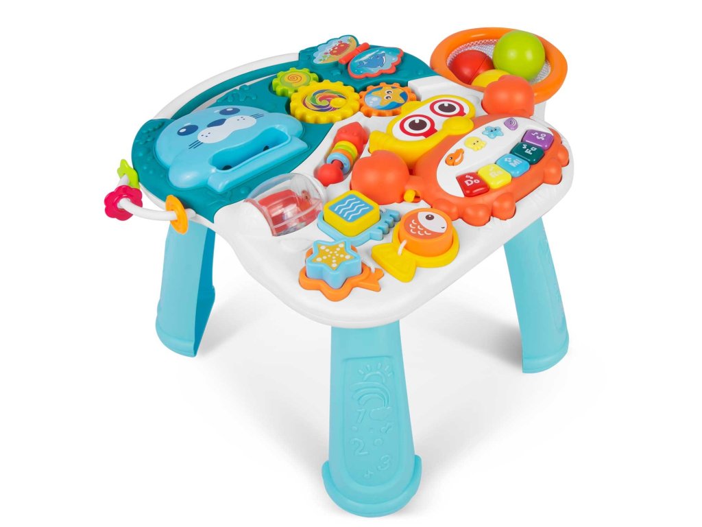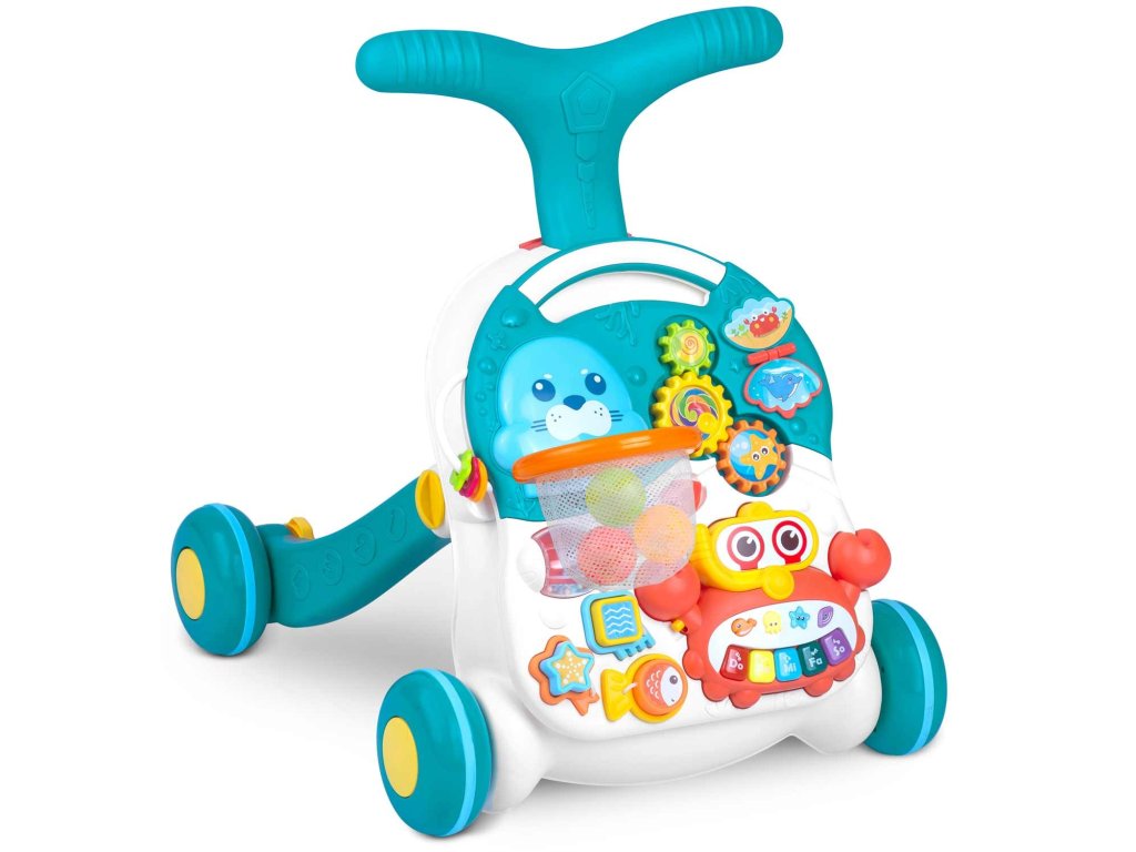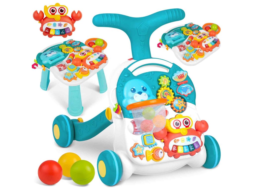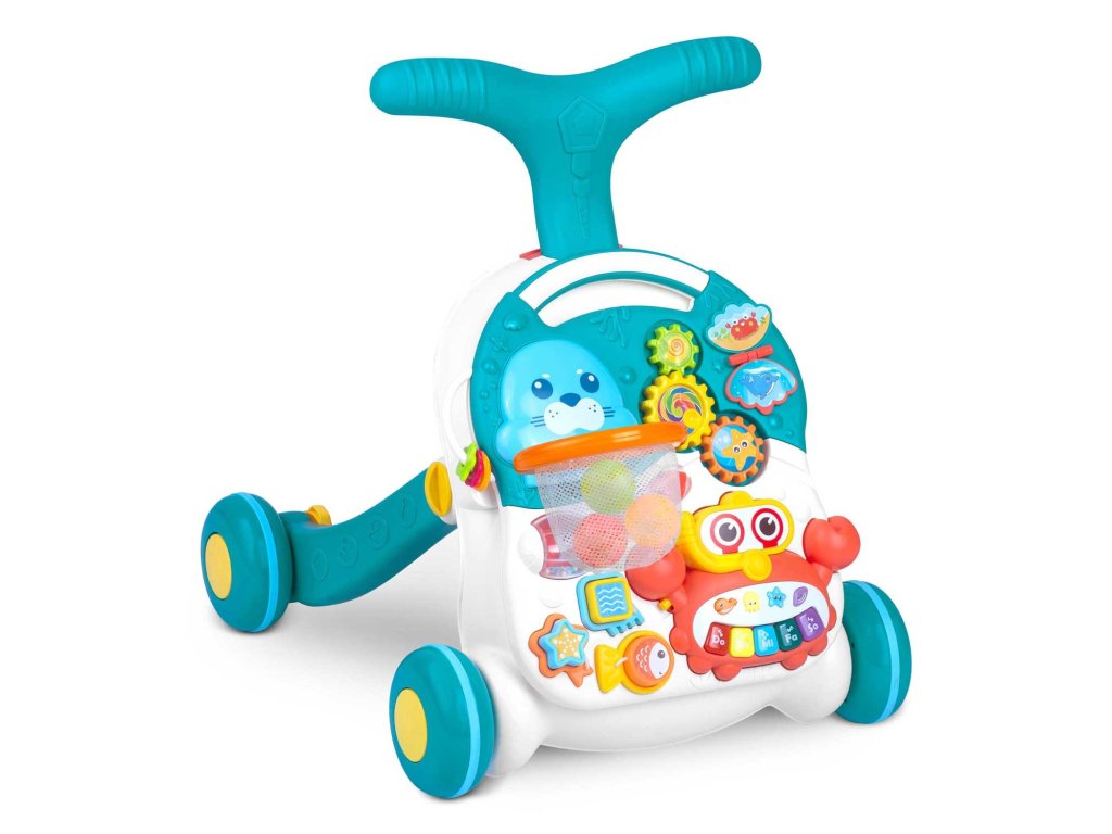 Osim učenja hodanja proizvod je idealan za učenje brojeva, boja i oblika . Odvojiva ploča (za uklanjanje ploče potrebno je izvući osigurač na stražnjoj strani konstrukcije) može se koristiti kao edukacijska ploča i nakon dodavanja nogu brzo se pretvara u edukacijski stol.