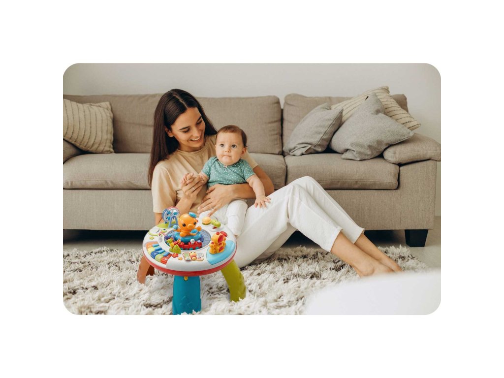 Proizvod je idealan za učenje brojeva, boja i oblika . Uklonjivi panel može se koristiti kao edukativna ploča, a dodavanjem nogu brzo se pretvara u edukativni stol.