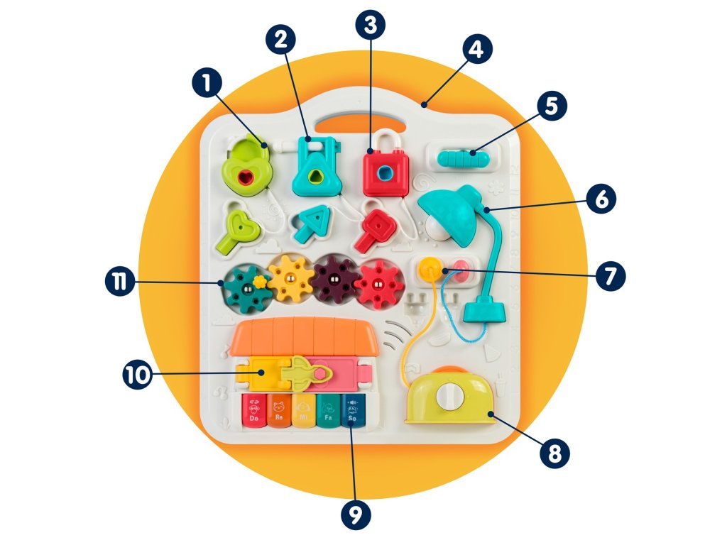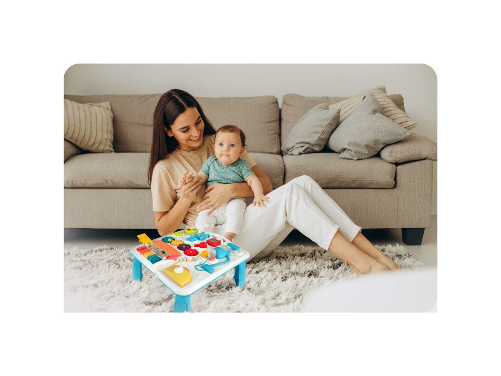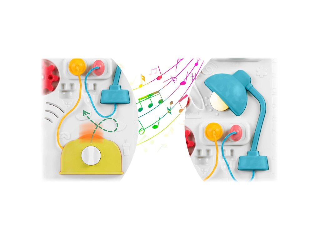 Stolić ima mnoštvo elemenata , koji omogućuju poboljšanje ručnih vještina vašeg djeteta . Kako bi se razvijala fina motorika, dijete može rukama okretati, pritiskati i raditi precizne pokrete.