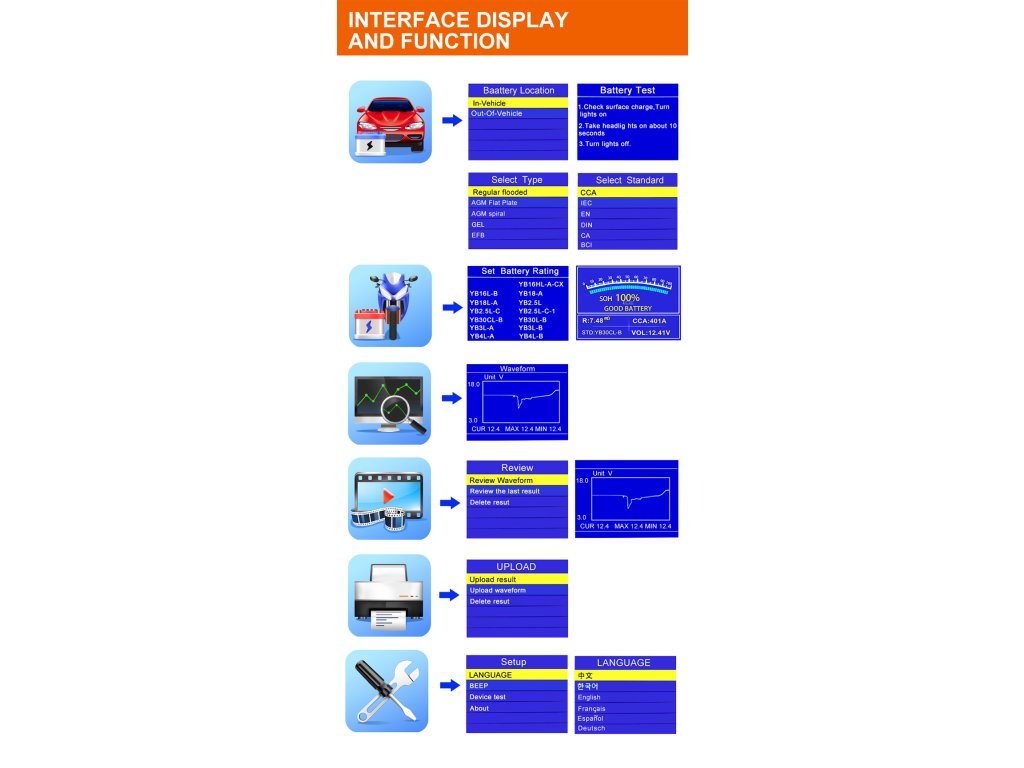 Raspon izmjerenog napona: 6 – 16 VMjereni parametri: SOC, SOH, otpor
