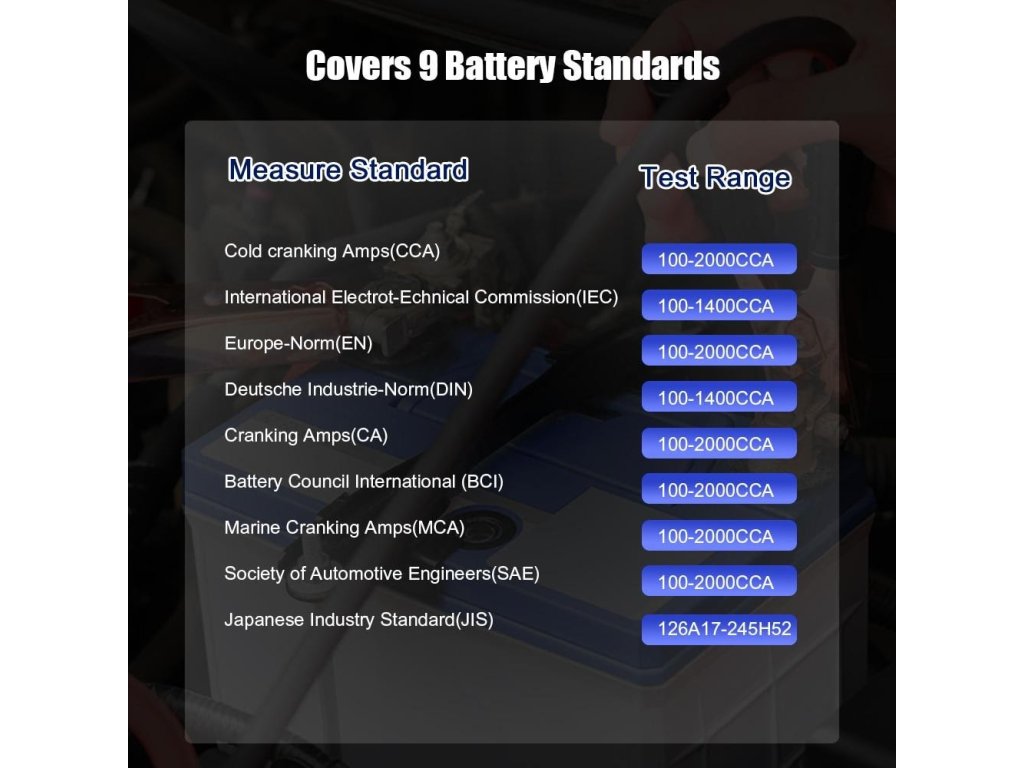 Za baterije od 12 VMjereni parametri: SOC, SOH, otpor