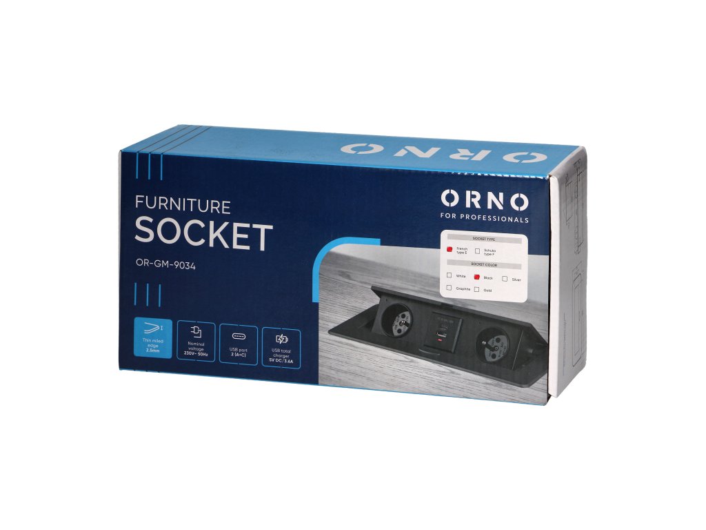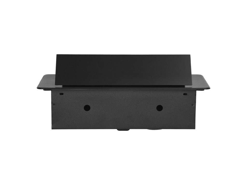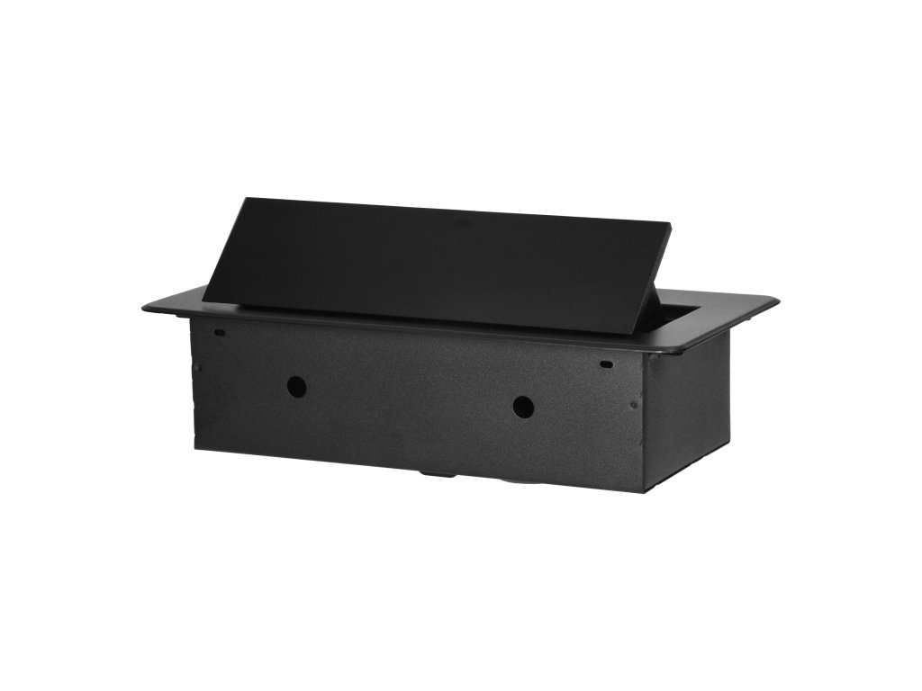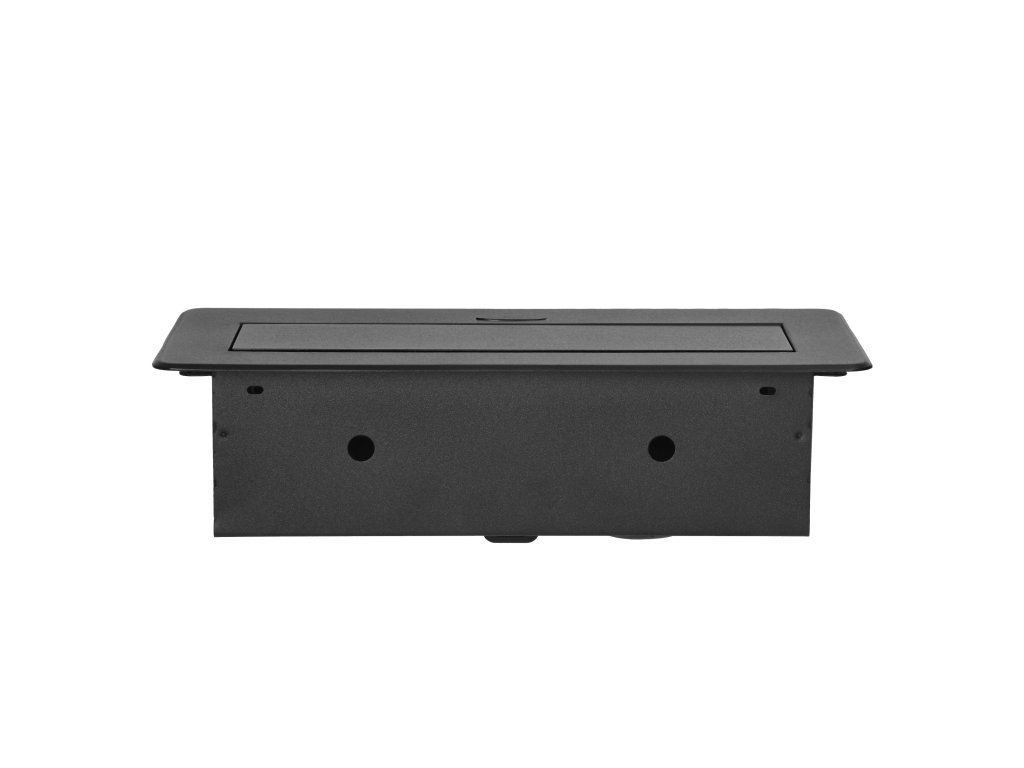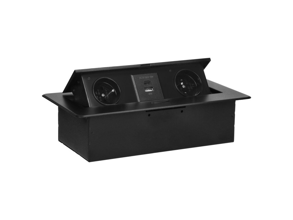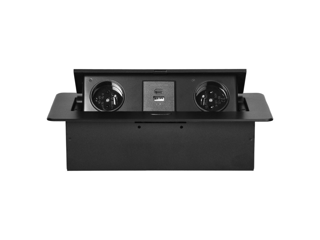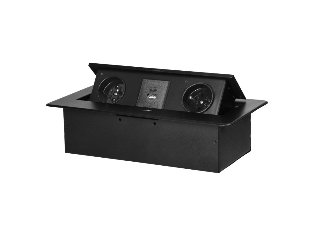 Crna, praškasto obojana utičnica dobro se slaže s završnim obradama većine namještaja i bit će u skladu s većinom aranžmana. Rafiniran oblik čini upotrebu ugradbene namještajne utičnice stilskom alternativom uobičajenim produžnim kabelima ili razdjelnoj letvi i učinkovito izbjegava zapetljavanje kabela.