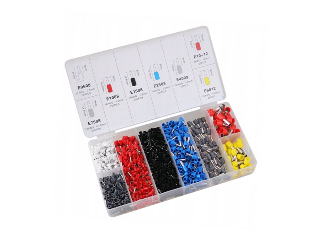 Set za završetak izoliranog kabela + krimper do 10 mm Krimper za izolirane i neizolirane završetke, jednostruke i dvostruke. ## ŠESTEROKUTNI ## sustav krimpiranja, zahvaljujući kojem nije potrebna velika sila prilikom krimpiranja. Najviša kvaliteta izrade, Sigurnost dobrog krimpiranja zahvaljujući blokirajućem sustavu koji omogućava otvaranje kliješta tek nakon završetka krimpiranja. Velika udobnost rukovanja zahvaljujući praktičnom obliku i maloj težini. Alat je praktičan, vrlo izdržljiv. Gumene ručke povećavaju udobnost rada. Radno područje: Za dvostruke čahure: 0,5-2,5 mm2 Za jednostruke čahure: 0,06-10 mm2 Tehnički podaci: Završetci: izolirani i neizolirani, jednostruki i dvostruki, Težina: 0,36 kg, Duljina: 17,5 cm, Kaljena glava, Praktični automatski krimper, Krimpiranje jednom rukom, Sustav s čegrtaljkom koji podržava krimpiranje, Najviša kvaliteta izrade i dug radni vijek alata, Sukladnost s normom EN 50109-1. Naš najbolji model sa sustavom potpore krimpiranja. U ponuđenom modelu proces krimpiranja dodatno je potpomognut sustavom s čegrtaljkom. Posebni mehanizam omogućava udobno krimpiranje jednom rukom. Šesterokutni sustav krimpiranja U ponuđenom modelu čahura se krimira sa šest strana, što znači da je vrlo čvrsto postavljena na vodiču. Dodatna prednost ovog rješenja je oblik stisnute čahure koja se približava krugu, što omogućava lakše umetanje tako stisnute stezaljke u utičnicu. ## Šesterokutni sustav krimpiranja ## U ponuđenom modelu čahura se krimira sa šest strana, što znači da je vrlo čvrsto postavljena na vodiču. Dodatna prednost ovog rješenja je oblik stisnute čahure koja se približava krugu, što omogućava lakše umetanje tako stisnute stezaljke u utičnicu. Završetci za kablove tipa fleksibilne niti: Količina: 1200 kom Materijal: PVC + bakar Pakiranje: PVC kutija s pregradama Boja: crvena, bijela, žuta, crna, siva, plava Veličina: 200 kom E0508-Bijeli: (za vodič 0,5mm2, duljina isturenog dijela 8mm) 200 kom E7508-sivi: (za vodič 0,75mm2, duljina isturenog dijela 8mm) 200 kom E1008-Crveni: (za vodič 1,0mm2, duljina isturenog dijela 8mm) 250 kom E1508-crni: (za vodič 1,5mm2, duljina isturenog dijela 8mm) 250 kom E2508-plavi: (za vodič 2,5mm2, duljina isturenog dijela 8mm) 50 kom E4009-sivi: (za vodič 4,0mm2, duljina isturenog dijela 9mm) 25 kom E6012-žuti: (za vodič 6mm2, duljina isturenog dijela 12mm) 25 kom E1012-crveni: (za vodič 10mm2, duljina isturenog dijela 12mm)Additional parameters