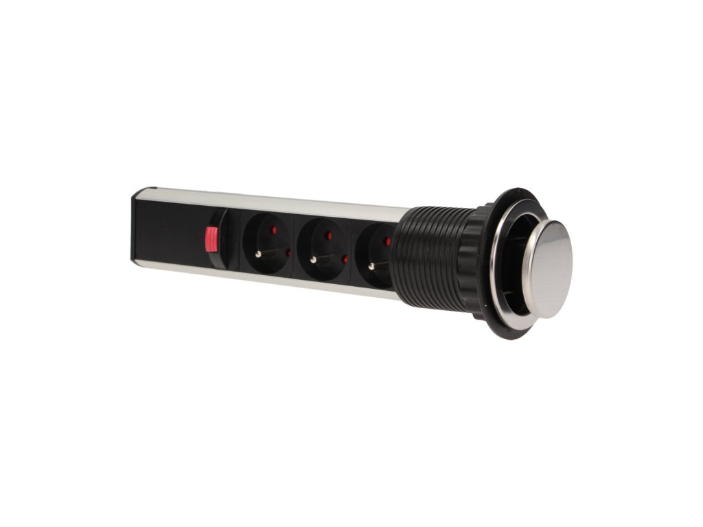 Set od tri utičnice 2P+Z u izvlačnom gornjem poklopcu omogućava pristup električnim utičnicama. Ima uvlačni panel s utičnicama i dodatnu bravu. Dizajnirano za unutarnju ugradnju u stolove, radne ploče i uredski namještaj. Za ugradnju uređaja u stolnu ploču potreban je samo jedan otvor promjera 6 cm.