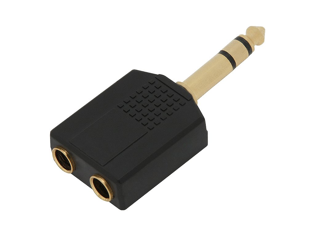 Jack razdjelnica s jednim priključkom Jack 6.3 i dvije stereo utičnice Jack 6.3 s pozlaćenim završecima.