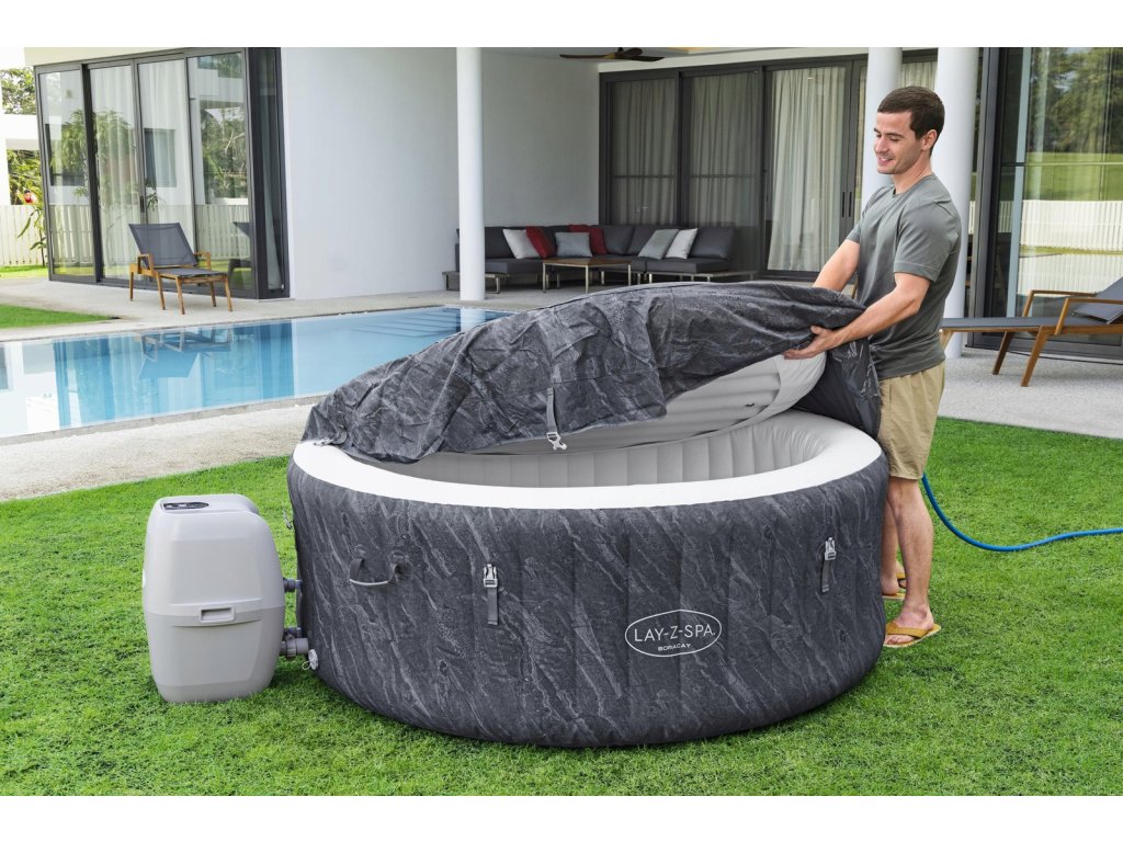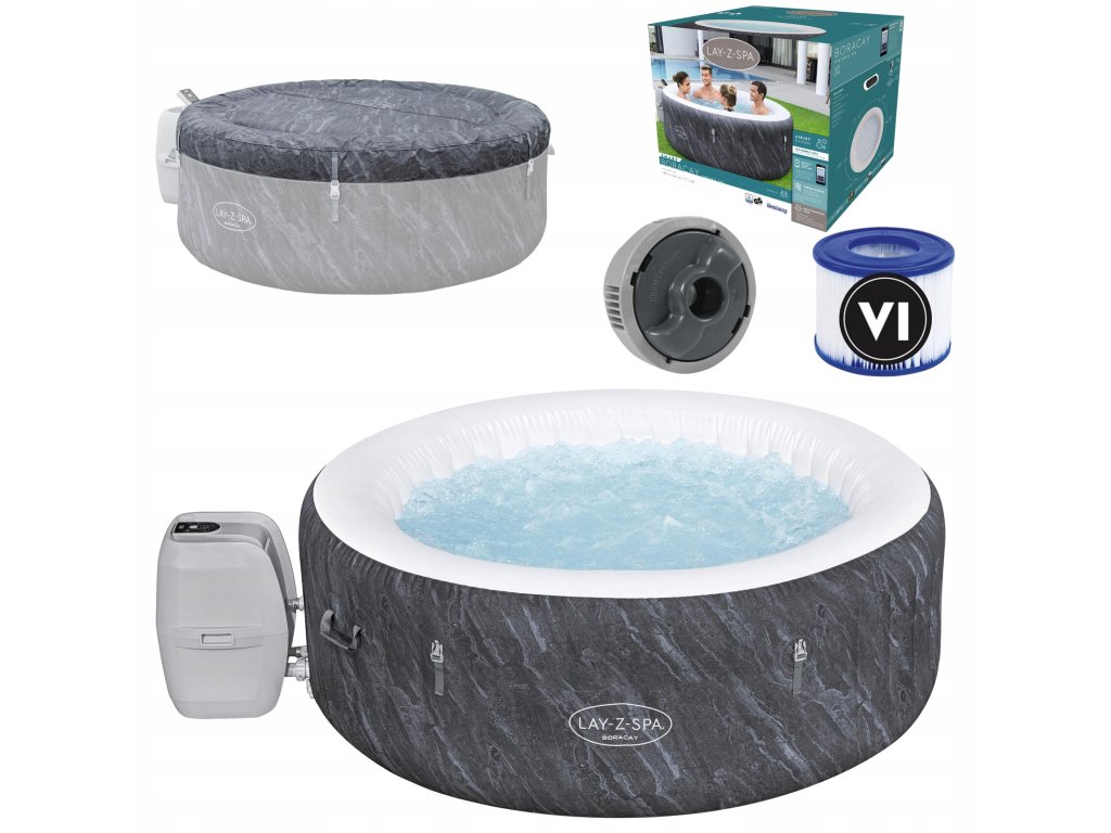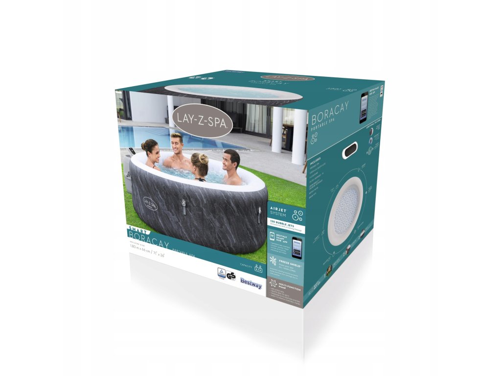 Jacuzzi Lay-Z-Spa Boracay AirJet je udoban spa, idealan za 2-4 osobe. Dimenzije nakon napuhavanja su 180 cm x 66 cm, a unutarnja veličina je 132 cm. Zahvaljujući tehnologiji AirJet™ pruža izvrsne doživljaje masaže s mjehurićima. Voda u jacuzziju se zagrijava na maksimalnu temperaturu 40°C, a sustav grijanja radi s učinkovitošću 1,5 - 2°C na sat. Zahvaljujući tome je jacuzzi energetski učinkovit i lako se koristi.
