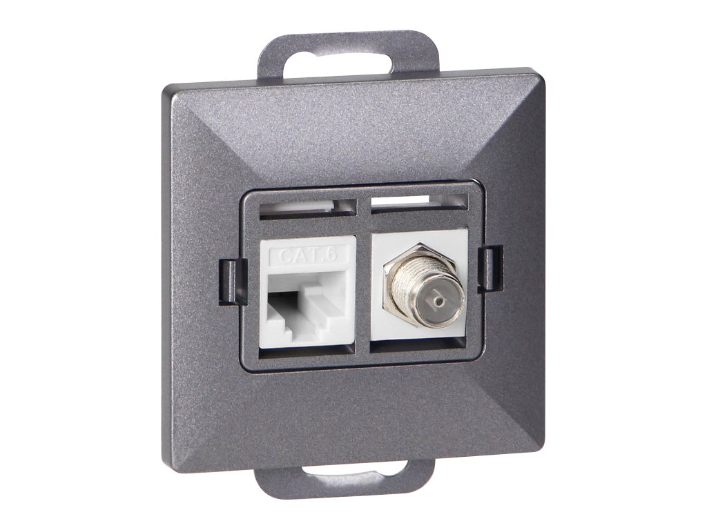 Jedna utičnica tipa F + Jedna utičnica tel-komp. RJ-45 Cat6 Perl, TV/F+RJ45/P, antracit