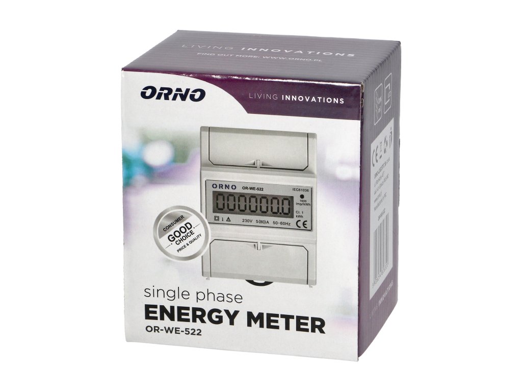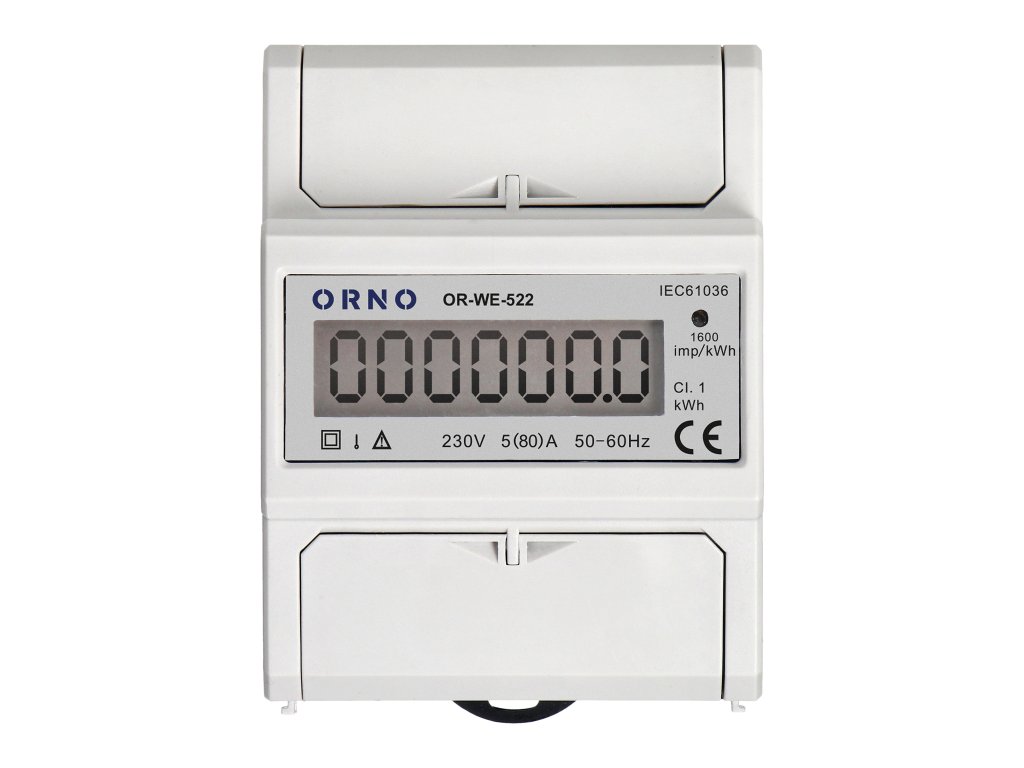 Uređaj koji pruža očitanja u metričkim jedinicama (kWh), za izravno mjerenje aktivne snage u jednofaznom sustavu. Poseban elektronički krug, kada je izložen protjecanju struje i primijenjenom naponu, generira impulse proporcionalno potrošenoj električnoj energiji. Potrošnja energije se prikazuje treptanjem LED diode. Broj impulsa se prevodi u potrošenu energiju i njegova vrijednost je prikazana na LCD zaslonu (6+1). Napajanje: 230V~, 50Hz, osnovna struja: 5A, maks. struja: 80A, frekvencija impulsa: 1600imp/kWh, točnost očitanja: klasa 1, montirano na stazu od 35 mm.