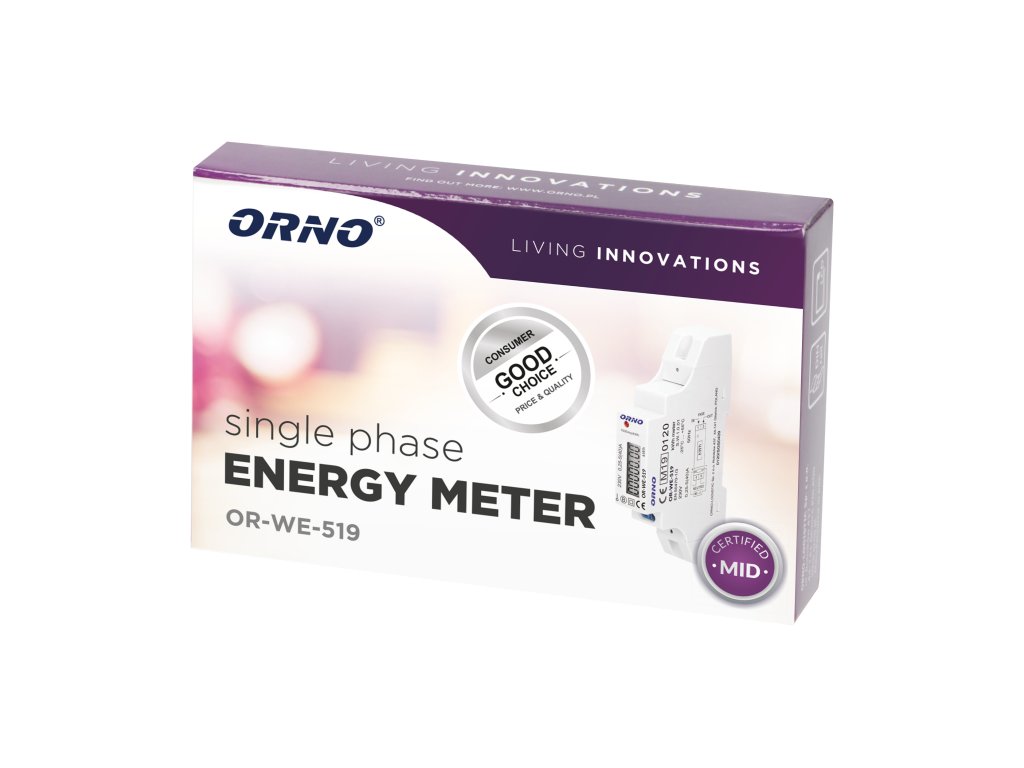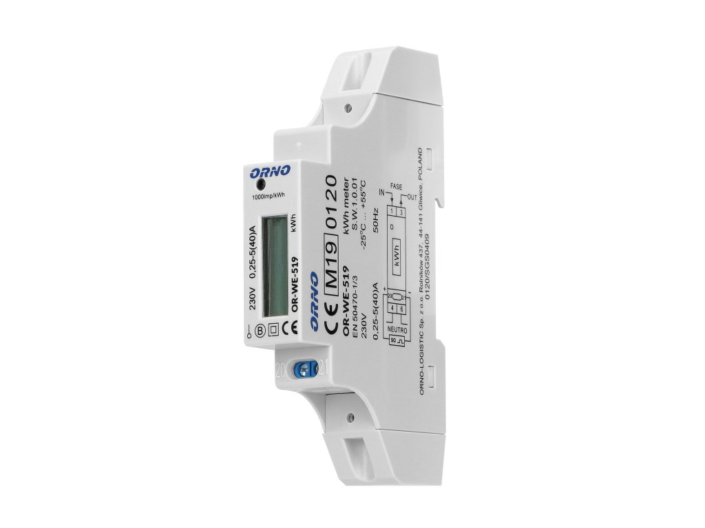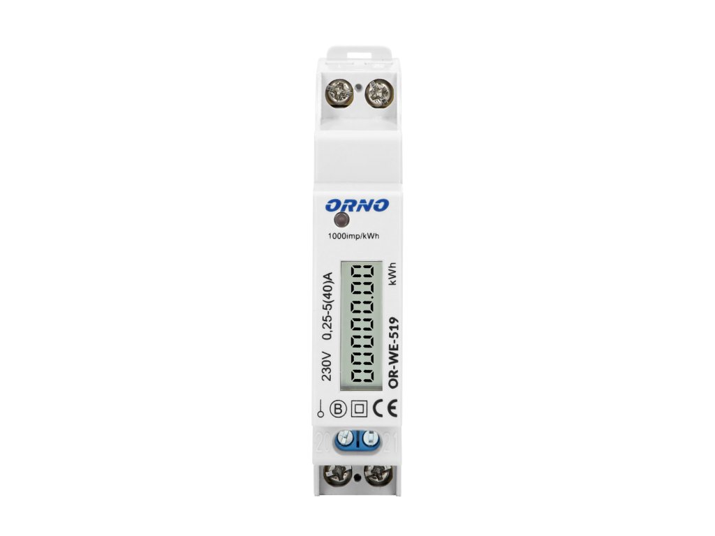 Jednofazni elektromjer, 40A, napajanje: 230V ~, 50Hz, osnovna struja: 5A, maks. struja: 40A, min. struja: 0,25A, frekvencija impulsa: 1000 imp / kWhDodatni parametri