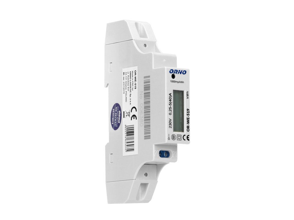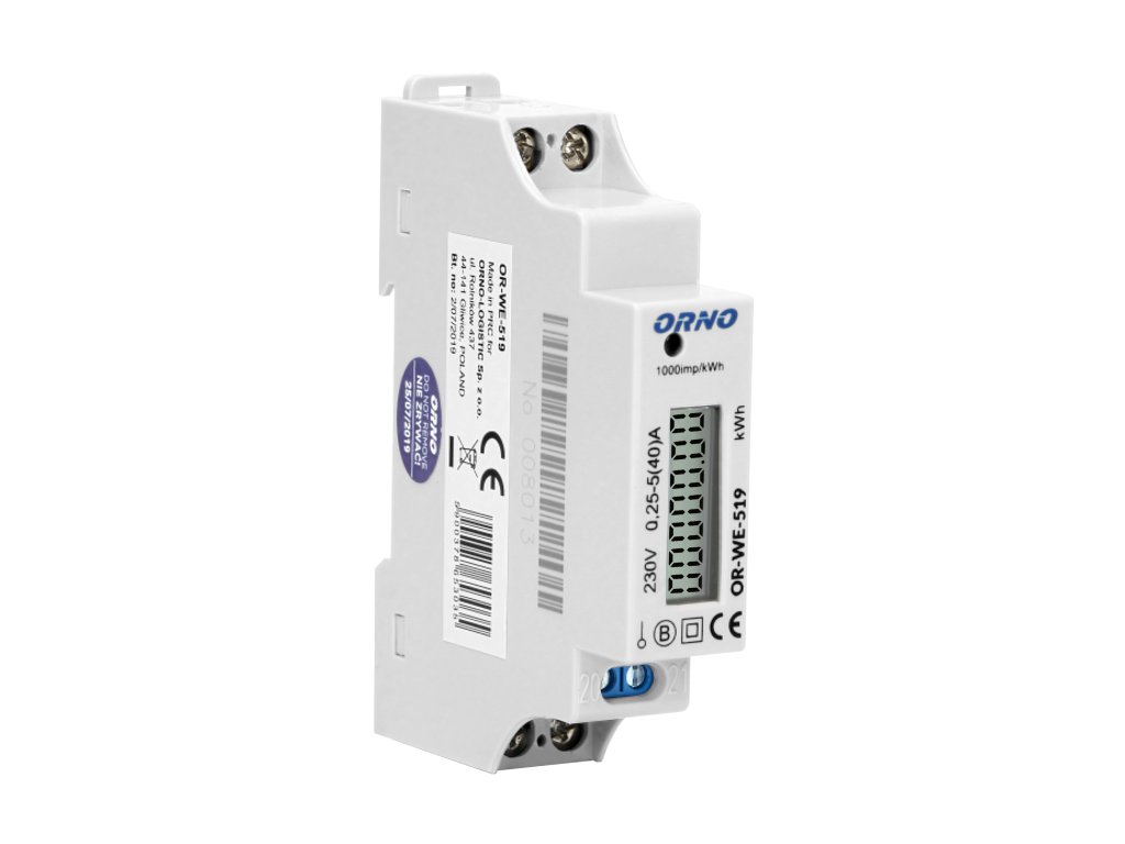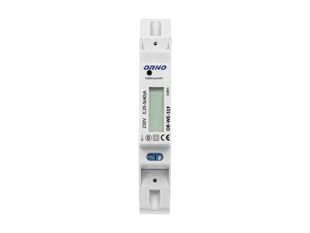 Jednofazni elektromjer, 40A, napajanje: 230V ~, 50Hz, osnovna struja: 5A, maks. struja: 40A, min. struja: 0,25A, frekvencija impulsa: 1000 imp / kWhAdditional parameters