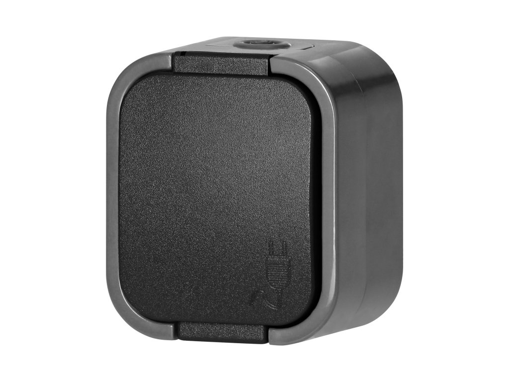 Jednostruka zidna utičnica 2P+E, otporna na prskanje vode s poklopcem B2, IP54, NT-16B2, siva/crna