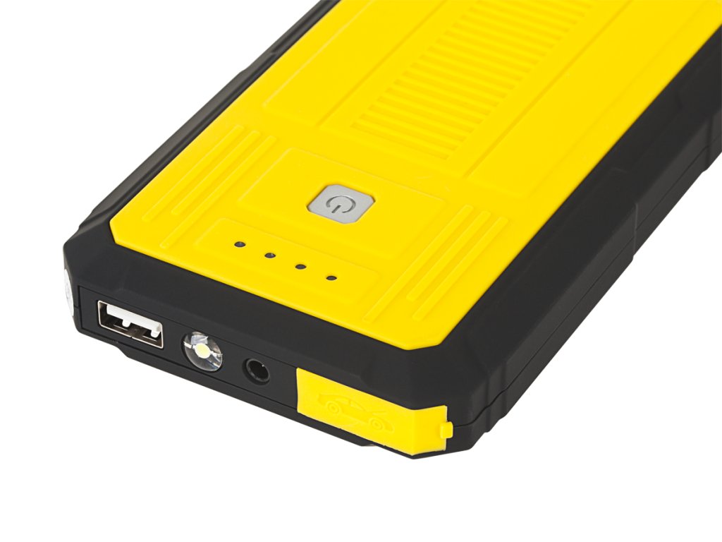 Przeznaczenie: 4-cylindrowe silniki samochodowe Pojemność baterii: 7200 mAh Natężenie startowe: 150 A Natężenie szczytowe: 300 A Wyjście: USB 5 V / 2,1 A; jump starter 16,8 V +/- 0,2 (maks.) Ładowanie: sieciowe: 220 ~ 240 V, 50/60 Hz; z gniazda zapalniczki samochodowej: DC 15 V / 1 A (zakres 9 - 16 V) Temperatura pracy/przechowywania: -20°C ~ 60°C Latarka Port ładowania USB W zestawie: Kable rozruchowe, ładowarki sieciowa i samochodowaPrzeznaczenie: 4-cylindrowe silniki samochodowe