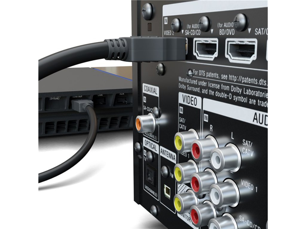 Kabel High Speed ??HDMI™ łączy telewizory i monitory z konsolami do gier, takimi jak PlayStation lub Xbox, a także rzutniki, projektory i odbiorniki strumieniowe, np. Amazon Fire TV lub Apple TV.