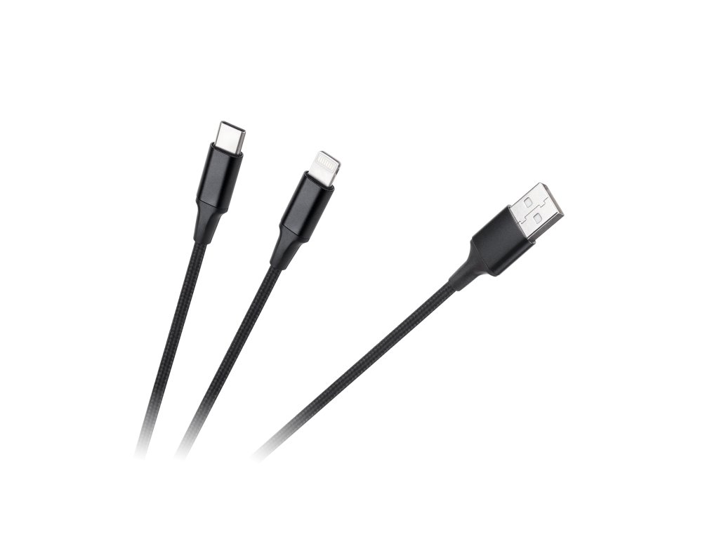 Kabel s USB A priključkom - USB C priključkom / lightning priključkom (2u1) 1m
