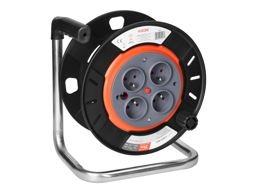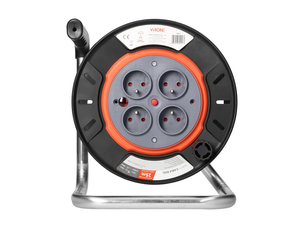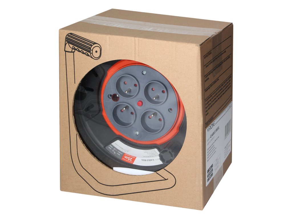 Kabelski vitlo 25m 4 utičnice IP20 230V 16A idealno je rješenje za kućanstva, radionice ili vrtove, gdje vam je potrebno pouzdano i praktično napajanje za više uređaja istovremeno. S dužinom kabela od 25 metara pruža vam fleksibilnost i dovoljan doseg, čak i ako su utičnice daleko od mjesta gdje trebate raditi. Ovaj proizvod omogućuje vam napajanje do četiri uređaja istovremeno zahvaljujući četiri utičnice koje su raspoređene naizmjence kako bi se izbjeglo preopterećenje i olakšalo priključivanje samostojećih uređaja.