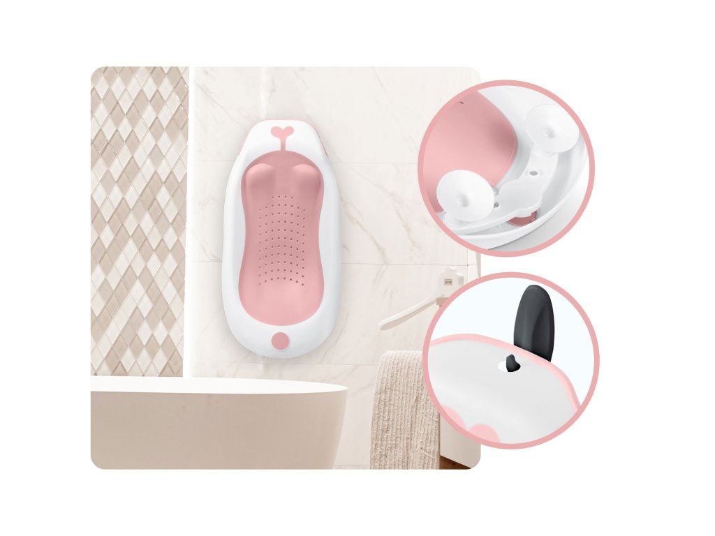 Zahvaljujući sklopivim nogicama kada se neće prevrnuti prilikom kupanja, a protuklizne nogice osiguravaju sigurnost na skliskoj površini.