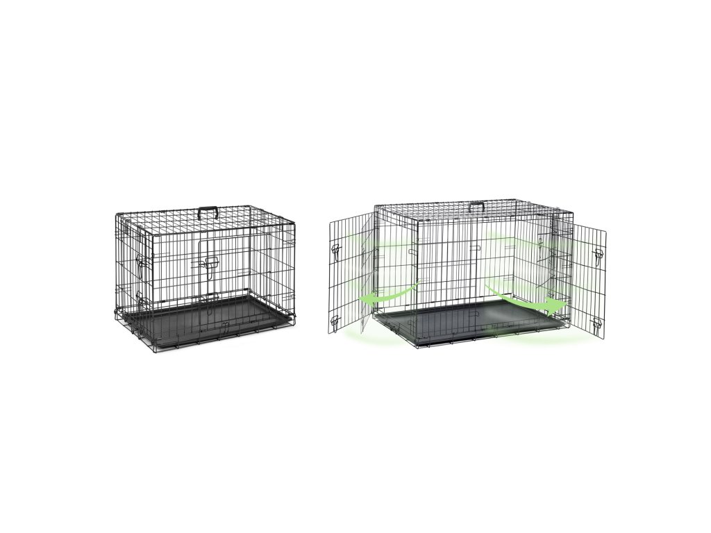 - Dvostruka vrata – prednja i bočna – omogućuju lak pristup i fleksibilnost kod postavljanja kaveza.