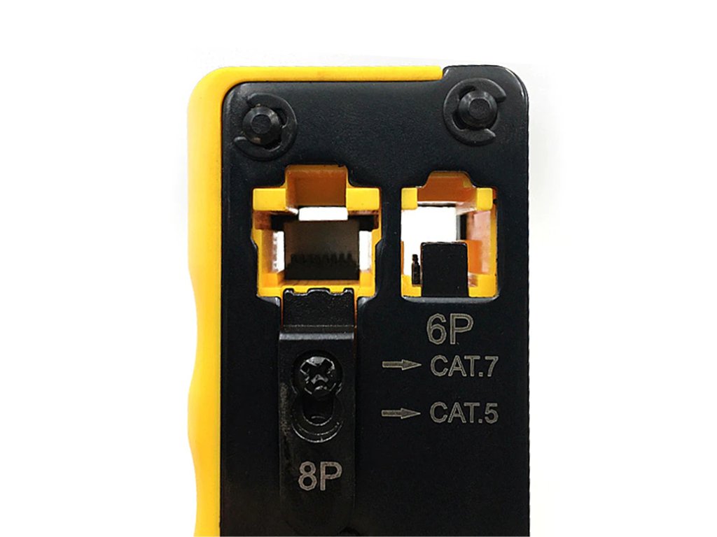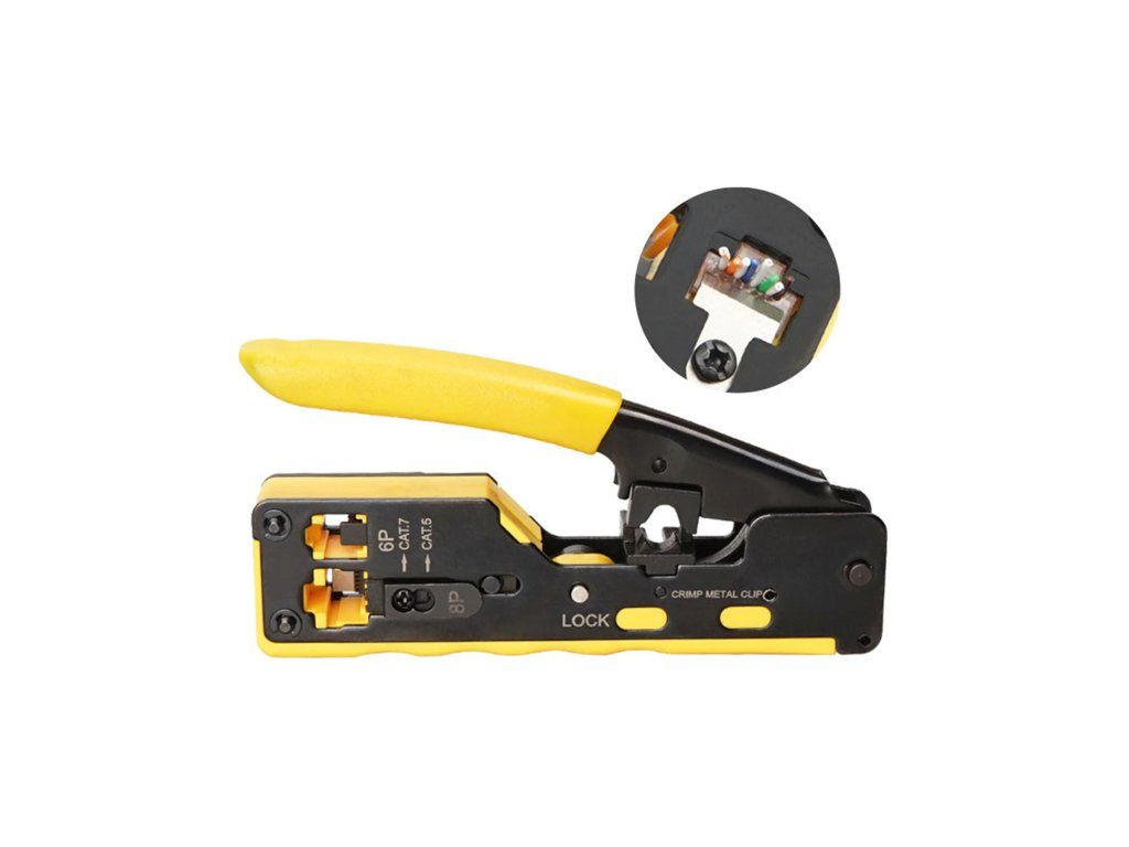 Alat za krimpanje za prohodne utikače kategorije 7Alat za krimpanje prohodnih modularnih utikača Cat5e / Cat6 / Cat7