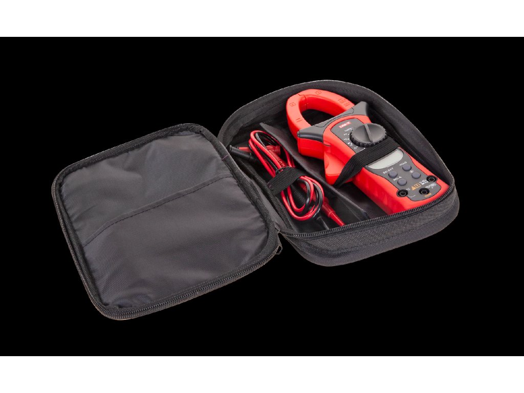 ZAKRESY POMIAROWE Napięcie stałe DC: 400 mV / 4 V / 40 V / 400 V / 600 V ±(0,8%+1) Napięcie zmienne AC: 4 V / 40 V / 400 V / 600 V ±(1,2%+5) Natężenie prądu zmiennego AC: 400 A / 1000 A ±(1,5%+5) Rezystancja: 400 Ohm / 4 kOhm / 40 kOhm / 400 kOhm / 4 MOhm / 40 MOhm ±(1%+2) Częstotliwość: 10 Hz ~ 10 MHz ±(0,1%+3) Temperatura: -40°C~1000°C ±(2%+8) Test diod Sprawdzanie ciągłości obwodu FUNKCJE DODATKOWE Automatyczna zmiana zakresów pomiarowych Tryb pomiaru względnego Podświetlany ekran LCD Zamrożenie ostatniego wskazania Automatyczne wyłączenie Buzzer Wskaźnik niskiego poziomu baterii Maksymalny odczyt: 4000 CECHY OGÓLNE Impedancja wejściowa napięcia stałego: ok. 10 MOhm Liczba pomiarów: 3/s Zasilanie: bateria 9 V (6F22) Maksymalna rozwartość szczęk: 40 mm Rozmiar wyświetlacza: 37 x 18 mm Wymiary produktu: 236 x 97 x 40 mm Waga produktu: 350 g W zestawie: bateria, przewody pomiarowe, sonda pomiaru temperatury, etuiZAKRESY POMIAROWE