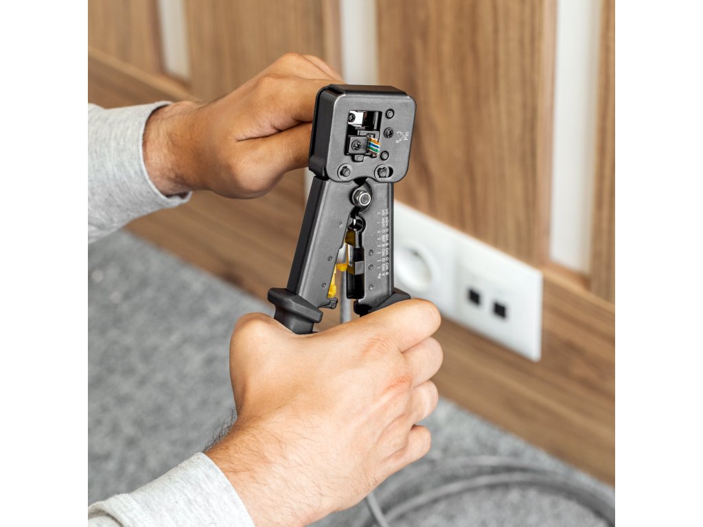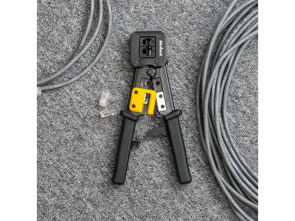 Alat za krimpanje iz serije Rebel Tools za izradu telefonskih i računalnih stezaljki neizostavni je alat u radionici svakog kućnog majstora. Uređaj je namijenjen za priključke RJ 6P i 8P.