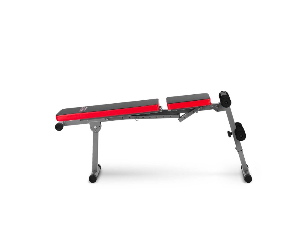 Stabilna, metalna konstrukcija osigurava sigurnost i maksimalnu stabilnost tijekom korištenja klupe. Podešavanje naslona, sjedala, ali i same klupe, daju potpunu slobodu prilagodbe uređaja vašim potrebama i setu vježbi. Zahvaljujući mehanizmu brzog sklapanja, klupa u sklopljenom stanju zauzima vrlo malo prostora.