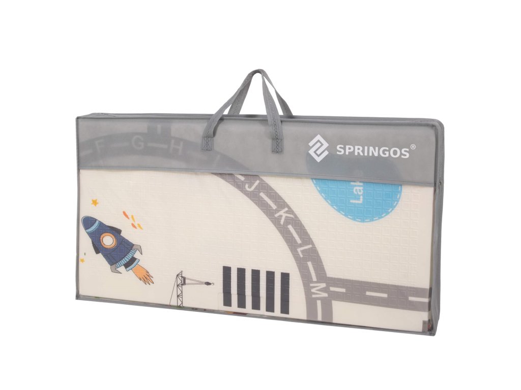 - Pakiranje izrađeno od netkanog tekstila sive boje + prozor od prozirne folije; opremljeno udobnom ručkom; zatvara se dvosmjernim patentnim zatvaračem; ima isprintan bijeli logo Springos.