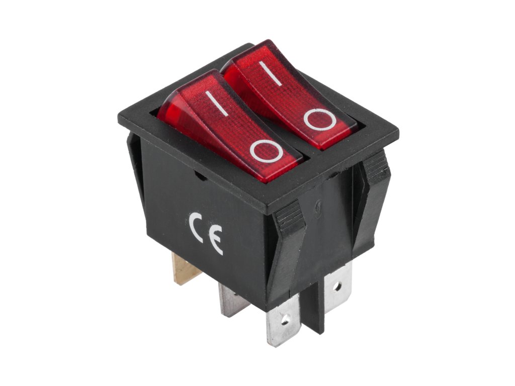 Kolijevni prekidač 230V crveni dvostruki 6pin PRK0049