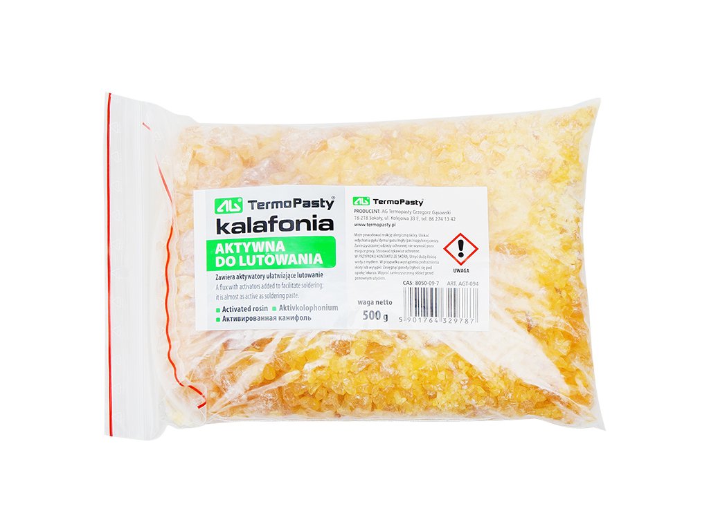 Aktivna kolofonija s dodatkom aktivatora koji olakšavaju lemljenje. Proizvod ima sličnu aktivnost kao pasta za lemljenje. Kolofonija podržava proces lemljenja, sprječava oksidaciju spojeva, eliminira stvaranje hladnih lemljenih spojeva.Proizvođač: AG CHEMIA