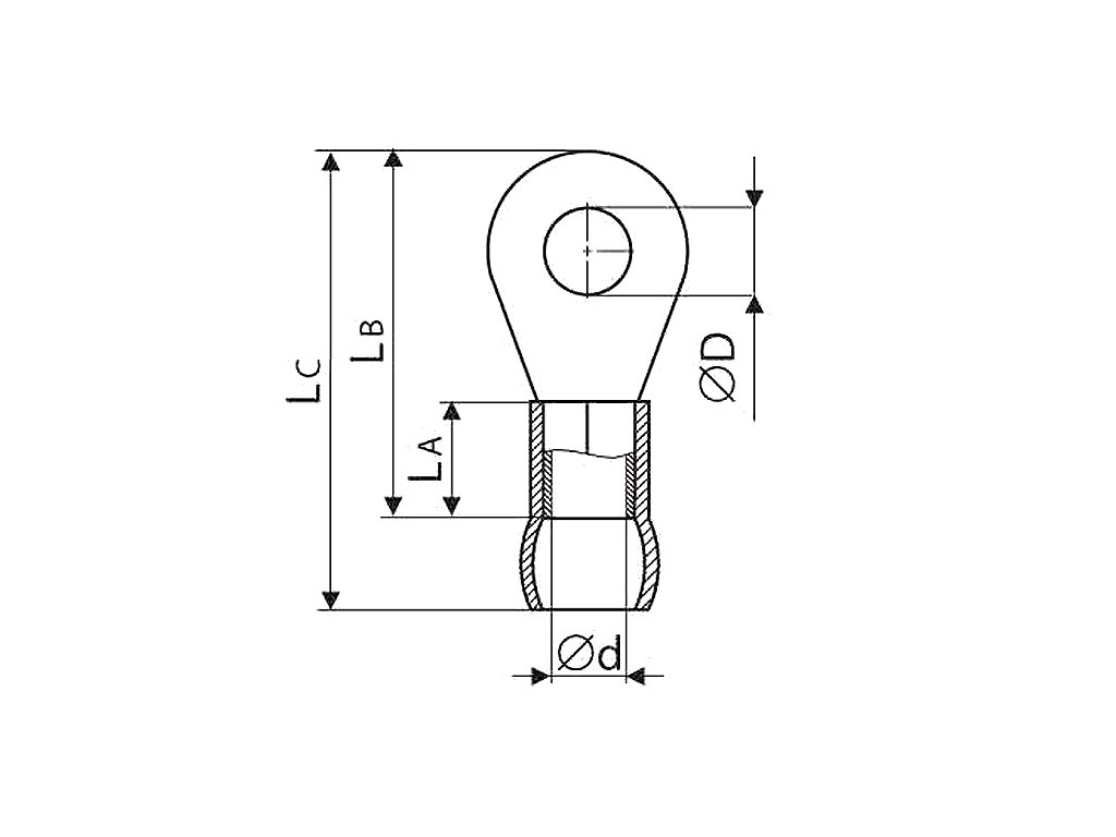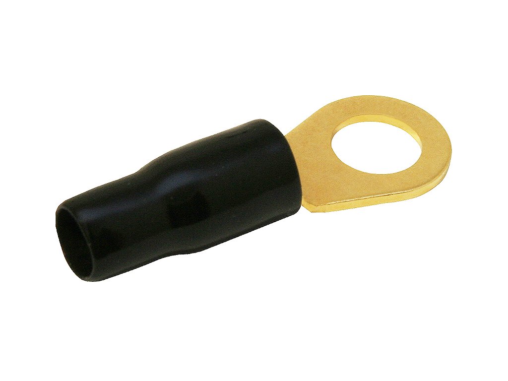 Złocone końcówki oczkowe izolowane do kabli miedzianych wielodrutowych.