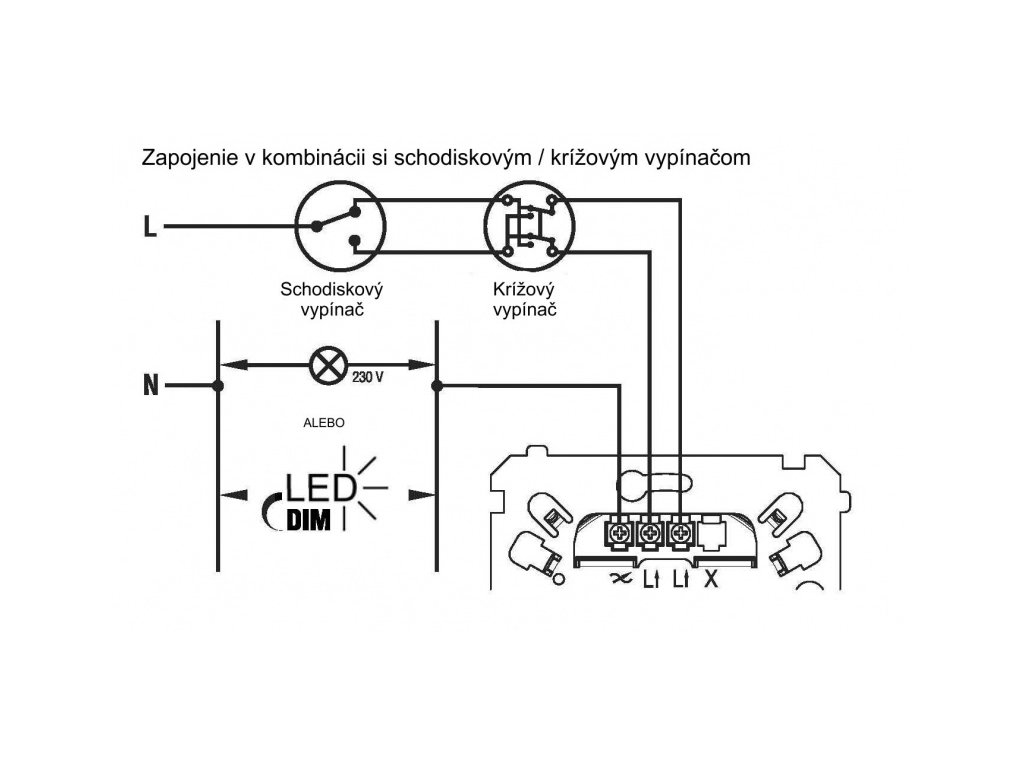 Rotacijski dimmer s gumbom za podesive LED žarulje (modul) 230V bijeli.Klasično ožičenje s dva vodiča ili ožičenje s tri vodiča u kombinaciji sa stubišnim (križnim) prekidačem. (bez potrebe za priključivanjem neutralnog vodiča N)