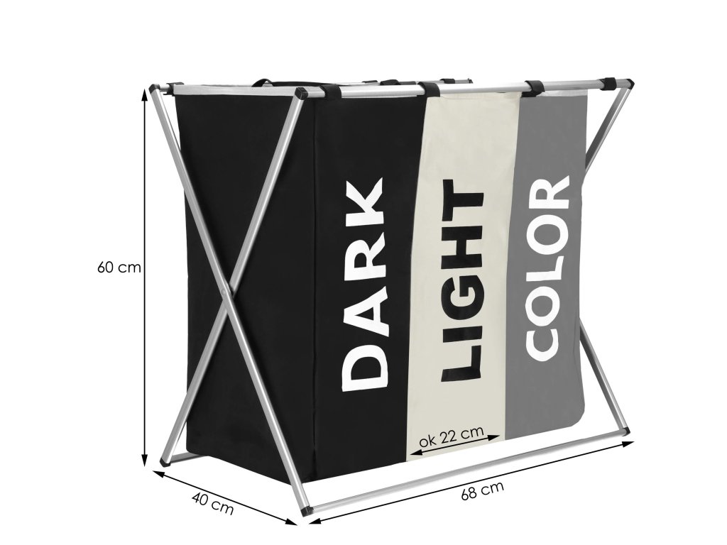 Košara za rublje HA0099 s 3 pretincima za odvajanje boja (tamna, svijetla, šarena)