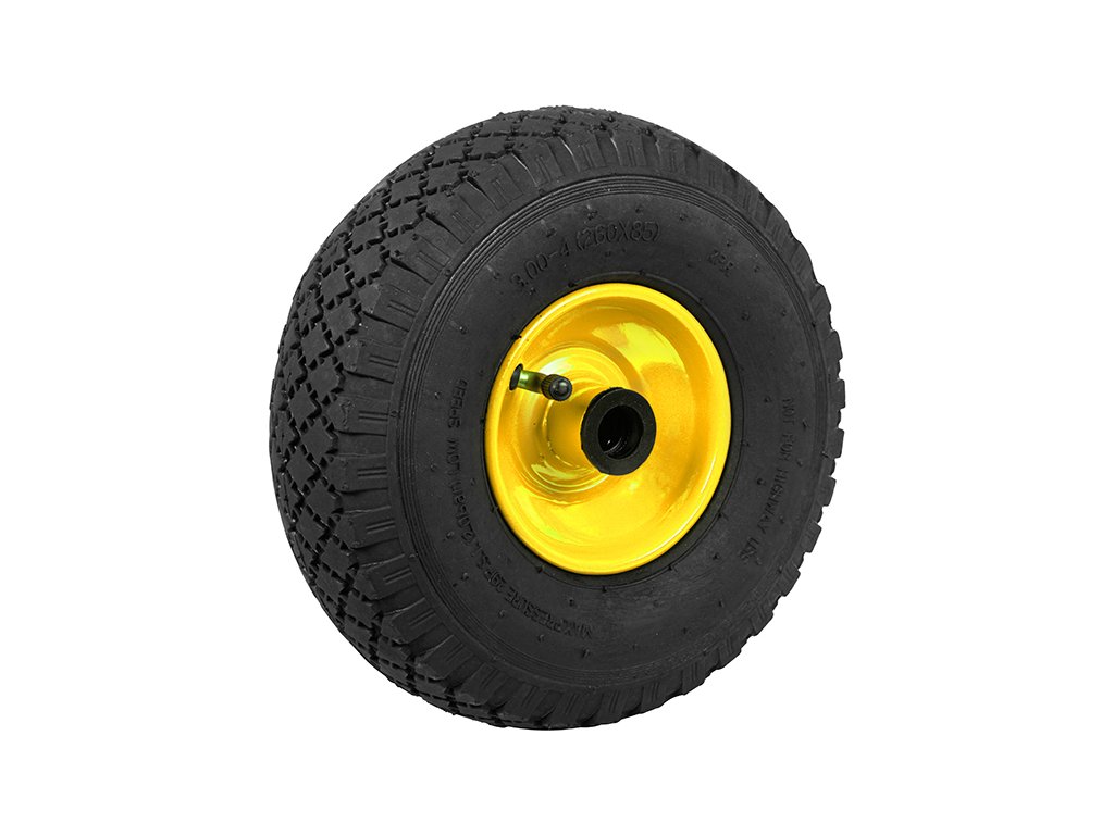 Kvalitetno kolo za kolica ili vozik s dvostrukom konstrukcijom koja omogućuje opterećenje do 200 kg. Odlično će odgovarati za jednostavne vrtne poslove i građevinske radove na teškom terenu. Metalni rub povećava čvrstoću i stabilnost kotača. Kotač se lako montira zahvaljujući kompletnom kompletu koji se sastoji od felge, gume i zračnice. Osim toga, opremljeni su autoventilom koji znatno olakšava pumpanje.