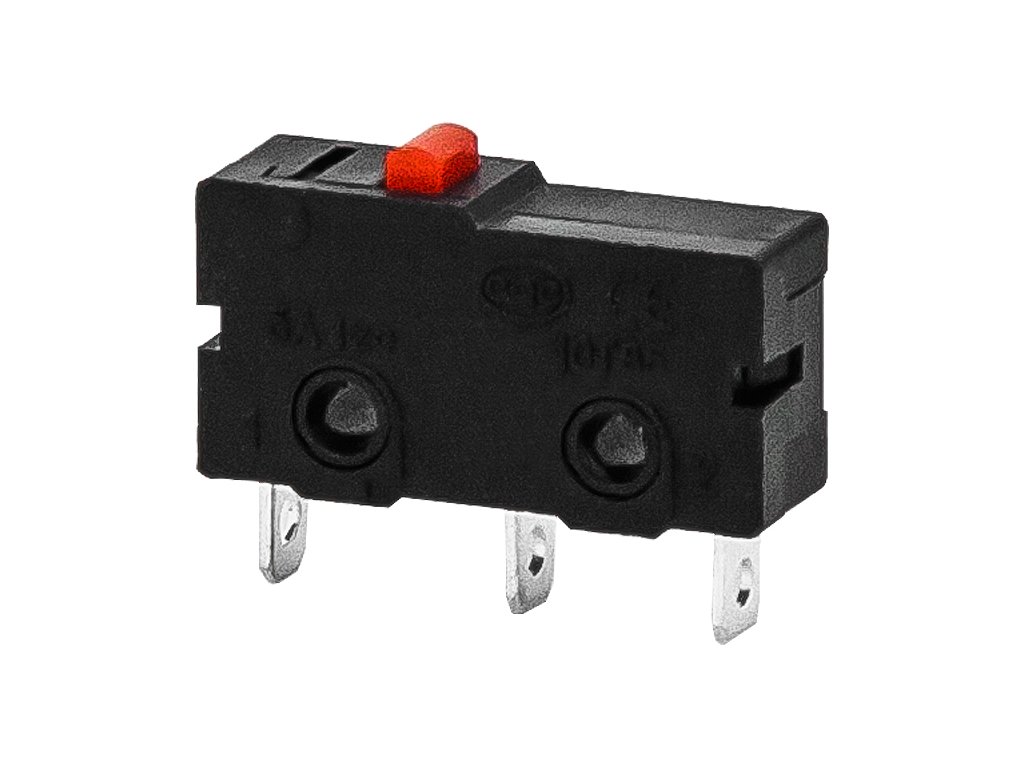 Trokontaktni krajnji prekidač bez ručice u crnoj boji.