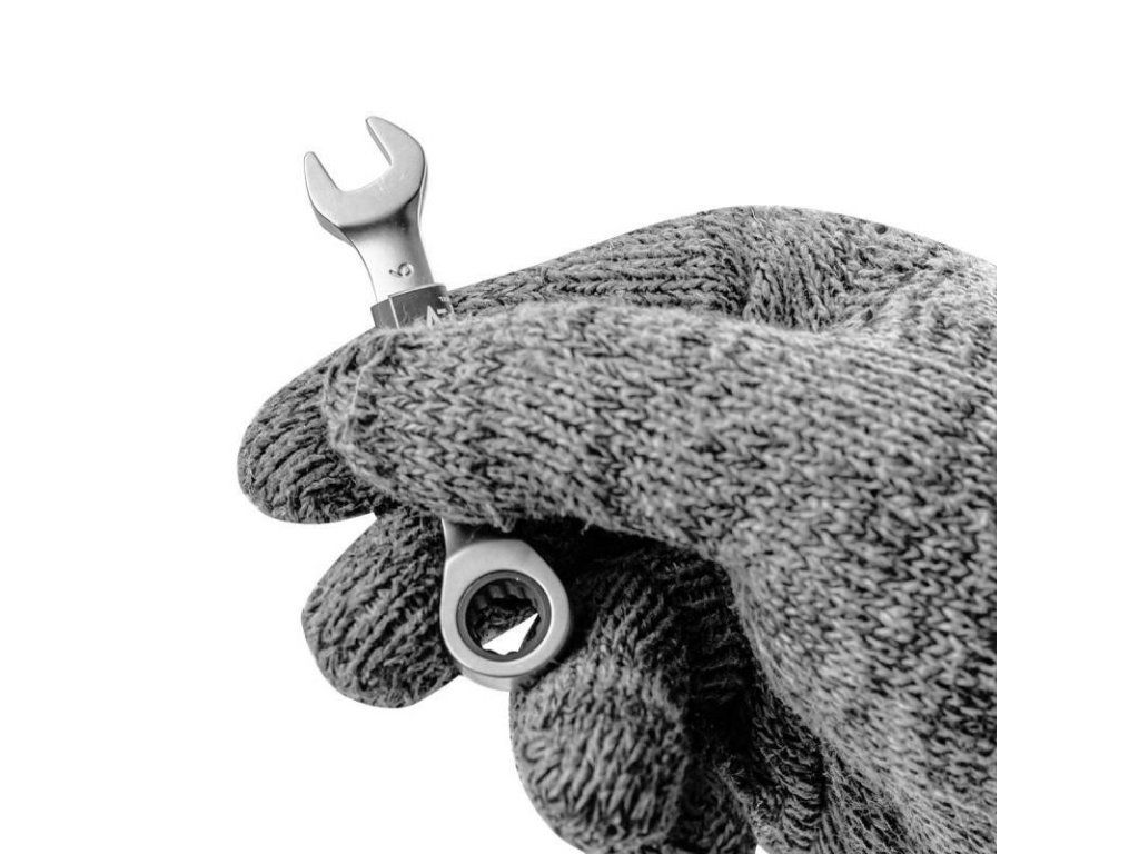 Ravni ključ s okom i račnom 8 mm namijenjen je za montažu navojnih spojeva tijekom hidrauličnih radova, popravaka automobila i hidrauličnih radova. Kombinirani ključ sastoji se od 2 radne komponente: račnaste komponente i klaksona. Račnasti mehanizam dijela s ovratnikom ključa omogućuje udoban rad na mjestima s ograničenim prostorom.