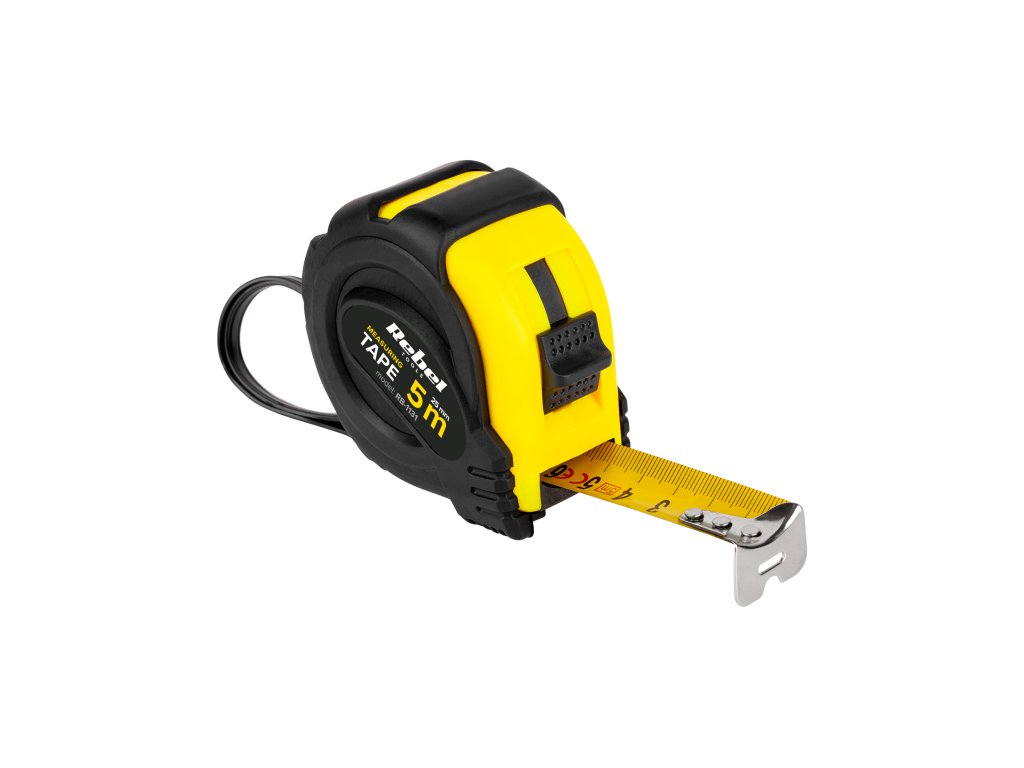 Mjerna traka Rebel s dosezom od 5 m izrađena je od čelika, koji u kombinaciji s robusnim plastičnim poklopcem jamči dug vijek trajanja i otpornost na udarce i druga oštećenja. Mjerna kuka i blokirni gumb zajedno s velikom širinom uređaja (25 mm) olakšavaju precizno mjerenje velikih udaljenosti bez oslonca, tako da mjerenje možete obaviti sami u gotovo svakoj situaciji.