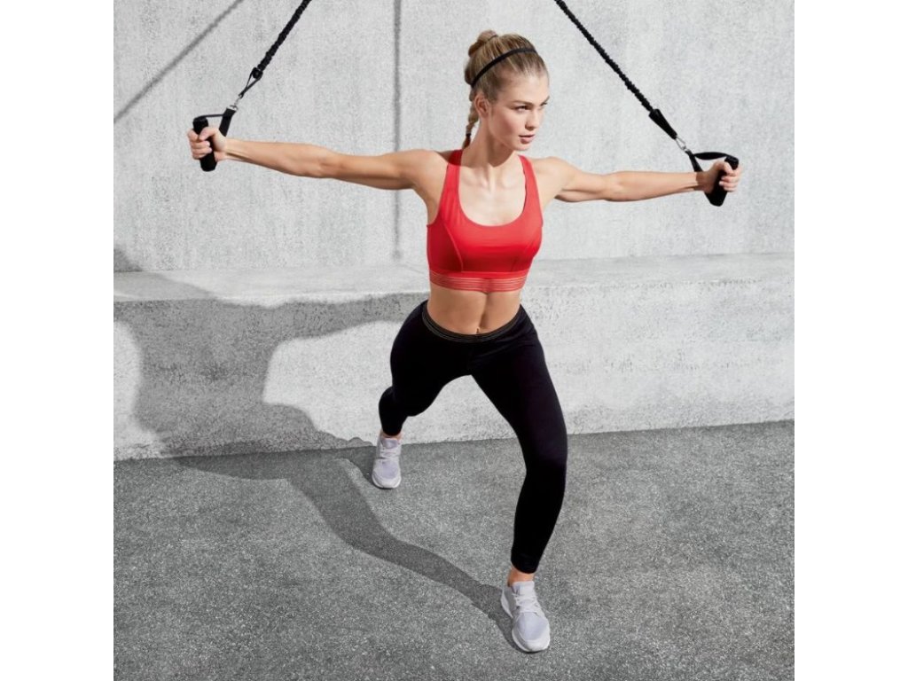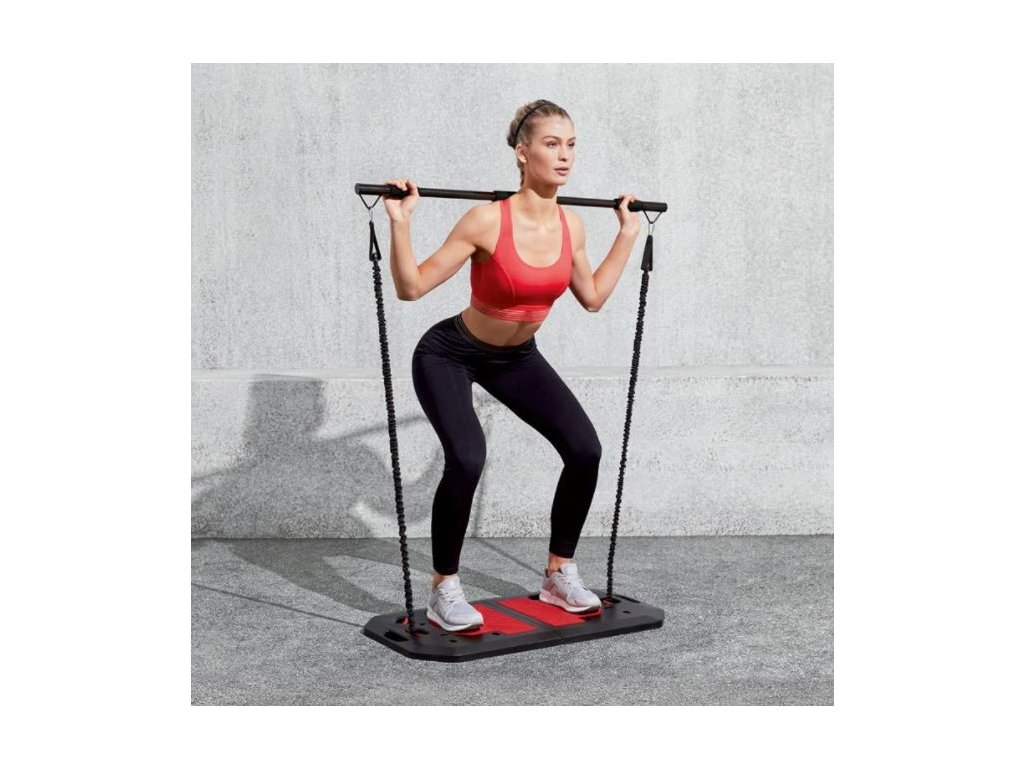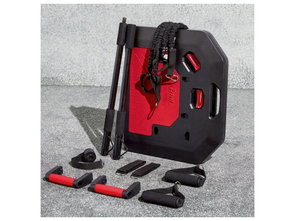 - U setu: 2 elastična ekspandera, 2 pjenaste ručke, 1 vijčana šipka, 2 podesive naramenice za zapešće, 1 sidro za okvir vrata, 2 uvlačive ručke za sklekove u različitim položajima, torba za nošenje, priručnik za trening