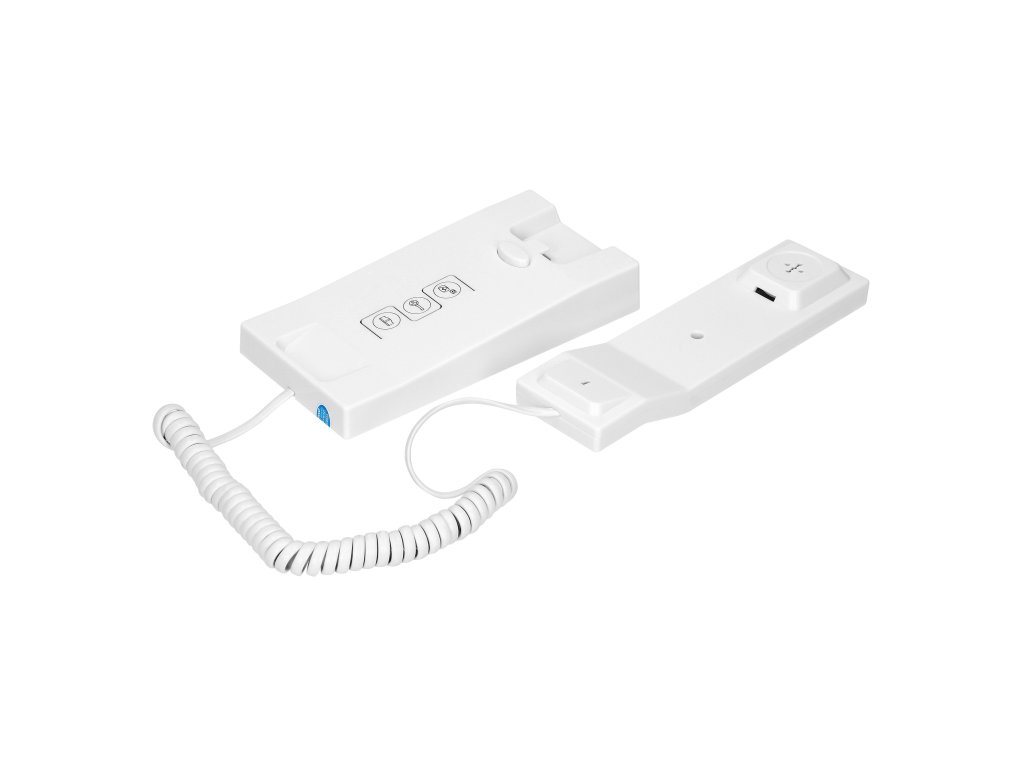 Dvobrojni portafon pogodan za površinsku montažu u stambenim zgradama, uredima, školama, vrtićima, bolnicama i slično. Omogućuje daljinsku komunikaciju između vanjskog panela i unutarnje slušalice te izravno upravlja električnim impulsom i otvaranjem brave. Vanjski panel ima zaštitni poklopac. Set je opremljen čitačem prislonskih tagova. Omogućuje podešavanje glasnoće i funkciju interfona (nakon spajanja dodatne slušalice).
