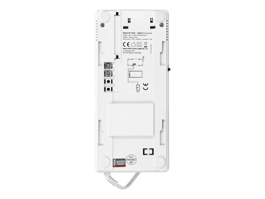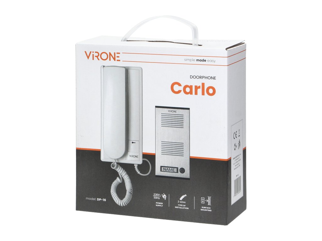 Klasičan 2-žični domofon CARLO za jednu obitelj, može se priključiti na standardnu instalaciju zvona. Površinska montaža, zaštitni poklopac protiv kiše je dio isporuke, osvijetljeno mjesto za ime, mogućnost stvaranja složenijeg sustava dodavanjem drugih elemenata. Proizvod također može biti odgovoran za kontrolu kapije. Komplet ima dvostupanjsku regulaciju glasnoće zvona, a funkcija interfona (komunikacija između dva unutarnja uređaja unutar jedne jedinice) je moguća uz korištenje dodatnog unutarnjeg uređaja. Električni udarnik (preporuča se s funkcijom memorije) ne zahtijeva dodatno napajanje.Sve informacije: