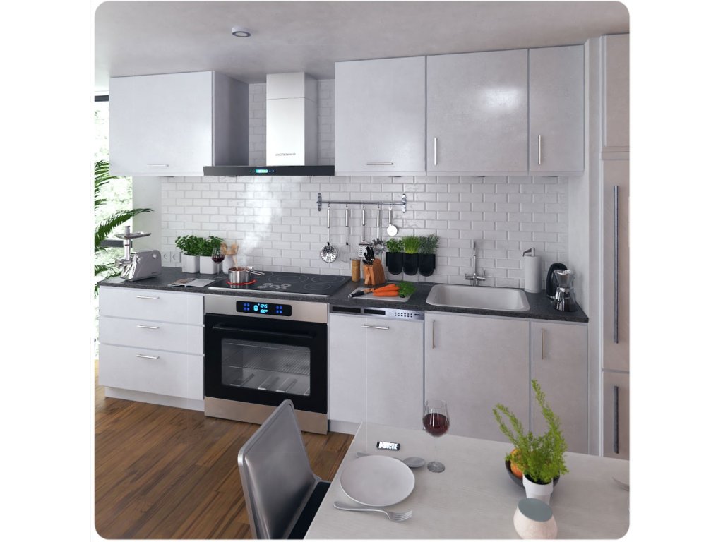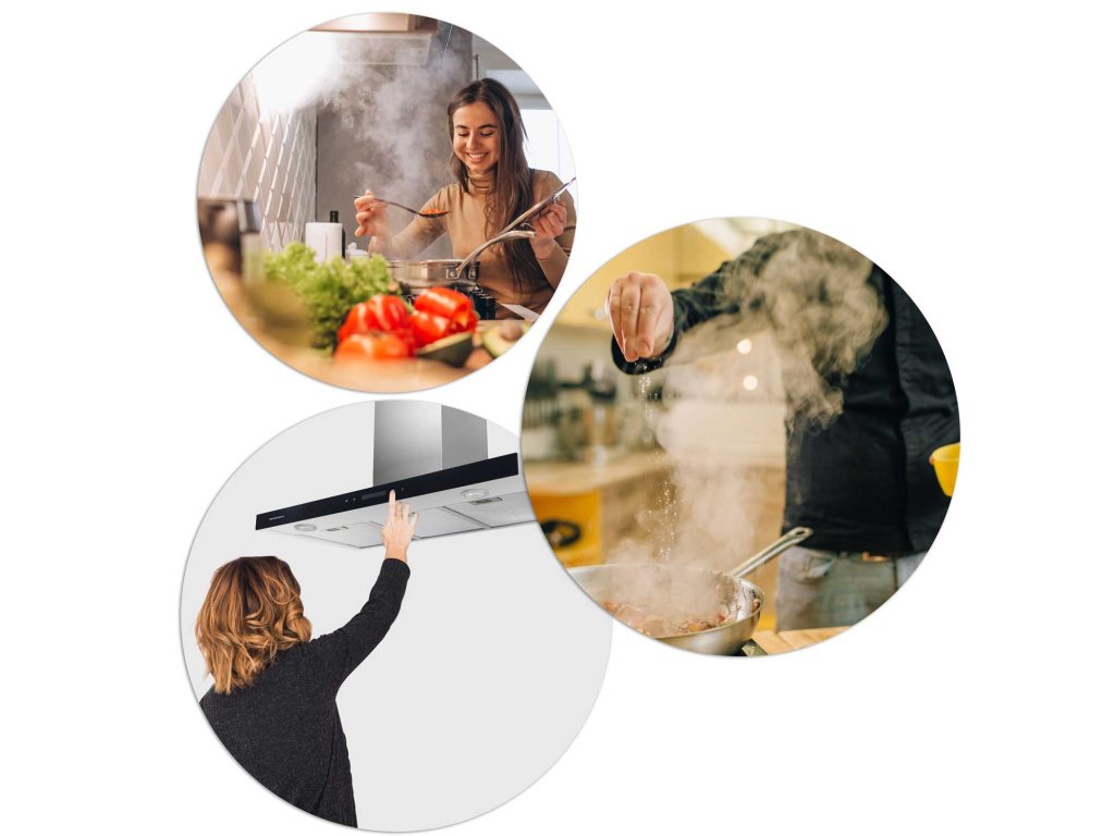 - uklanja masne pare (zahvaljujući čemu se masnoća ne lijepi na ploče, vrata ormarića i spojeve, ne stvara se ljepljivi sloj nečistoće)