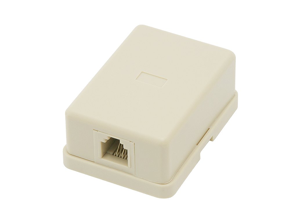 Telefonska utičnica u obliku male kutijice s jednim ulazom za telefonski utikač tipa 6P4C.