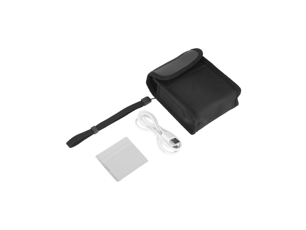 POMIAR DYSTANSU Zasięg: 4~-600 jardów (4-550 metrów) Dokładność: ± 1 jard Powiększenie: 7x Średnica obiektywu: 25 mm DODATKOWE FUNKCJE Automatyczne wyłączanie Wskaźnik niskiego poziomu baterii Wskaźnik gotowości do pracy CECHY OGÓLNE Zasilanie: Wbudowany akumulator 1500 mAh; 3,7 V Li-ion; ładowanie przez port micro USB Wymiary: 114 x 78 x 46 mm Waga: 225 g Akcesoria: przewód USBPOMIAR DYSTANSU