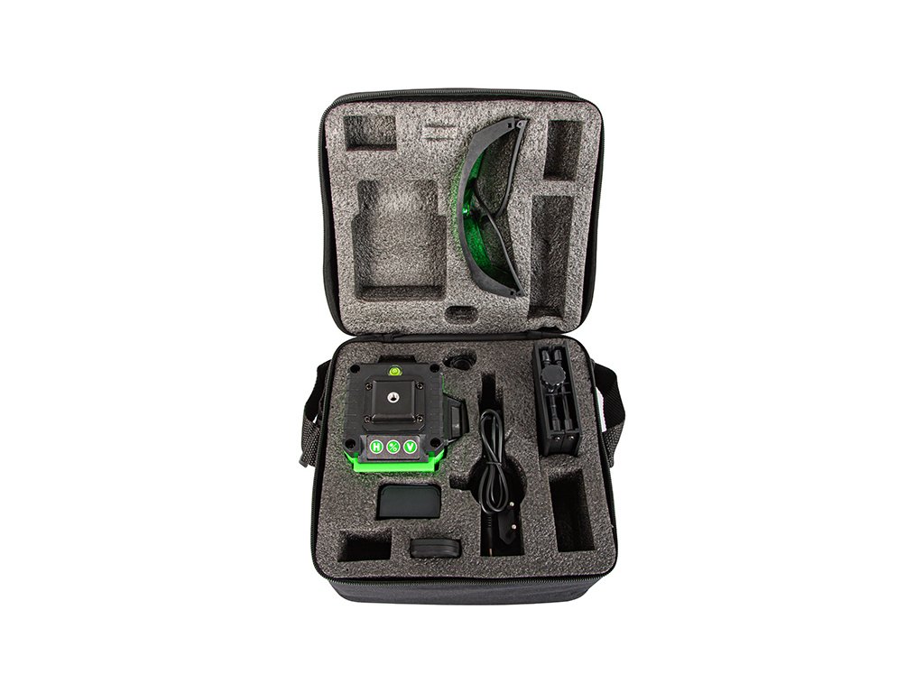 Uređaj je opremljen s 3 snažne glave koje ispuštaju 12 laserskih zraka na 360 stupnjeva. To omogućuje jednostavnu instalaciju npr. pločica ili elemenata na zidu.