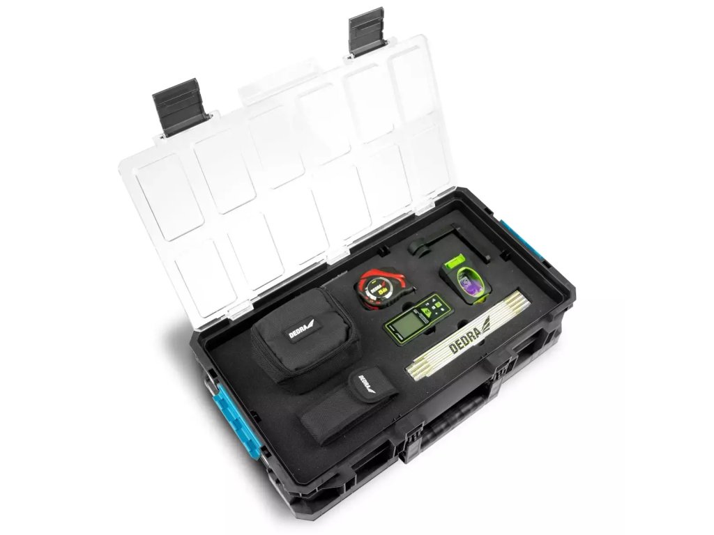 Jedan od modularnih boxova transportnog sustava DEDRA SAS+. Kutija ima dimenzije 526 x307 x126 mm i volumen 14,3 l. Kutija za alate ima oblogu od spužve debljine 25 i 40 mm s udubljenjima za elemente seta. Poklopac kutije za alate izrađen je od prozirnog polikarbonata koji omogućuje pregled stavki pohranjenih u kutiji. Kutija ima čvrstu i udobnu ručku od visokokvalitetne plastike, a polikarbonatne kvačice osiguravaju čvrsto i robustno pričvršćivanje. Gusto rebraste obloge osiguravaju visoku krutost i otpornost na deformacije.