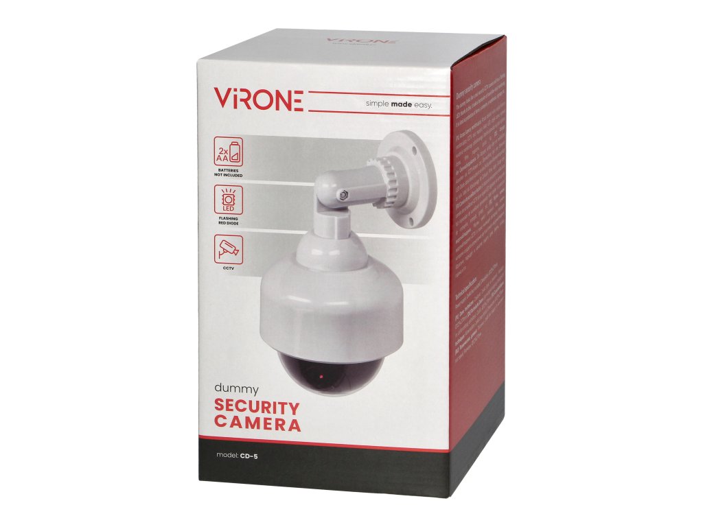 Predstavljamo vam atrapu sigurnosne CCTV kamere koja izgleda kao prava i opremljena je trepćućom LED diodom. Ova atrapa stvara dojam neprekidnog 24-satnog nadzora. Dizajnirana je za unutarnju i vanjsku instalaciju.Tehnička specifikacija