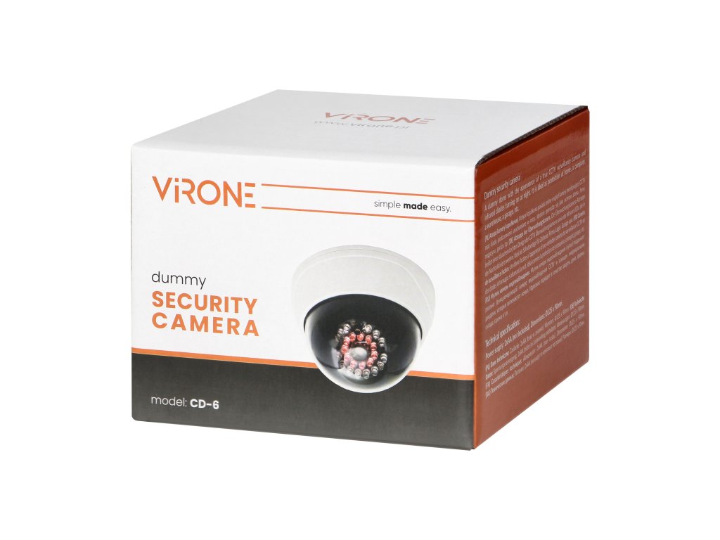 Predstavljamo lažnu kameru s modernim dizajnom koja ima izgled prave CCTV sigurnosne kamere, uključujući infracrvene diode koje se aktiviraju noću. Ova lažna kamera je idealno rješenje za zaštitu vašeg doma, tvrtke, skladišta, garaže i drugih mjesta.Lažna kamera je dizajnirana za unutarnje postavljanje i laka je za montažu na strop. Zahvaljujući svojoj bijeloj boji, lako se uklapa u svaki interijer.