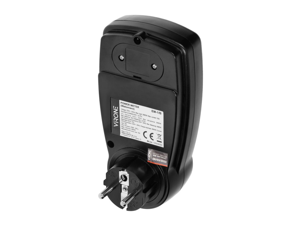 LCD mjerač potrošnje s dvjema tarifama, crni