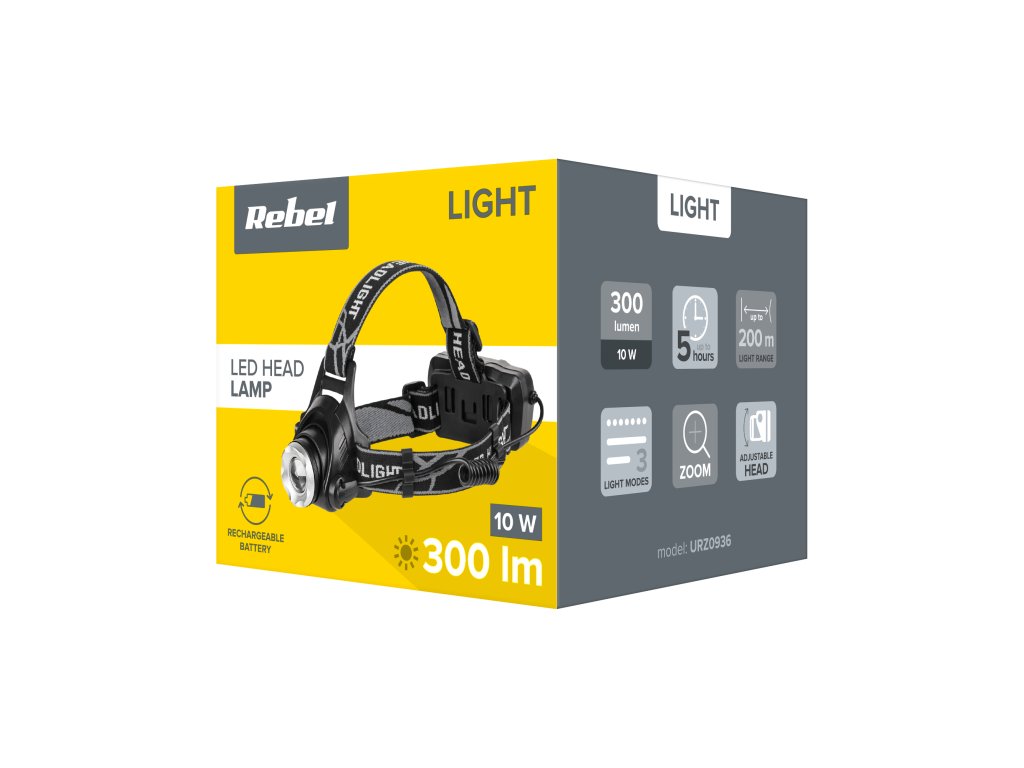 3 tryby świecenia: mocne światło, słabe światło, światło stroboskopowe Funkcja zoom Regulowana głowica Moc: 10 W Strumień światła: 300 lm Zasięg światła: do 200 m Czas pracy: do 5 godzin Czas ładowania: do 8 godzin Akumulator: 2x 3,7 V; 1500 mAh Materiał: Aluminium + ABS Wymiary: 77 x 70 x 50 mm Waga: 243 g3 tryby świecenia: mocne światło, słabe światło, światło stroboskopowe